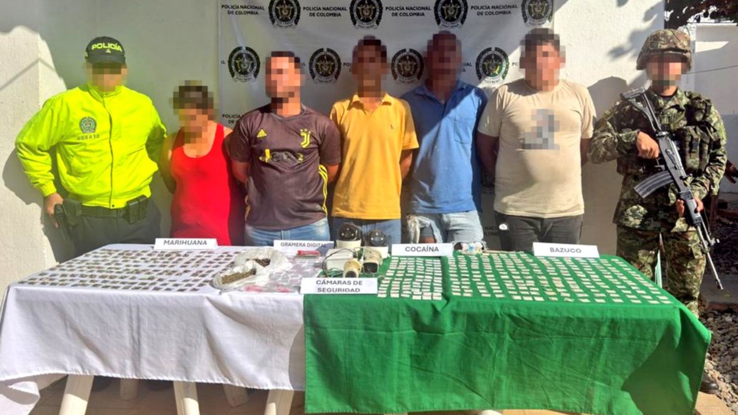 Durante la operación, las autoridades incautaron 222 dosis de bazuco, 60 dosis de cocaína y 300 dosis de marihuana, además de tres teléfonos celulares, cuatro cámaras de video y una gramera digital.