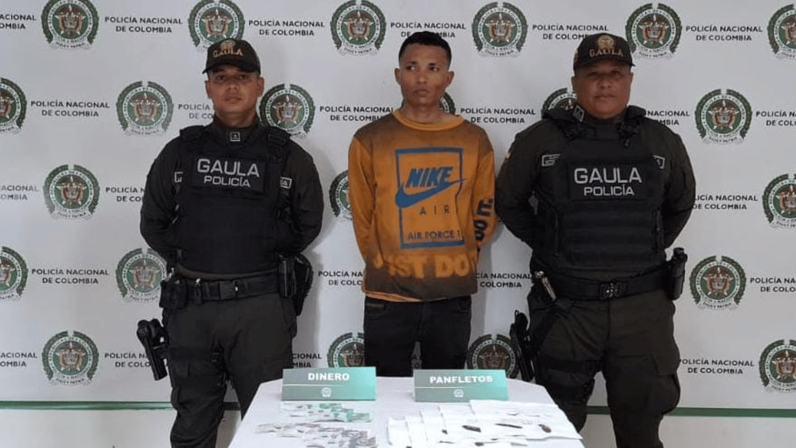 “Este individuo exigía dinero mediante panfletos alusivos a ‘Los Pepes’, con el fin de permitirle a la víctima continuar con su actividad comercial. Gracias a la denuncia oportuna y a la rápida acción policial, se logró su captura en flagrancia”, señaló el oficial.