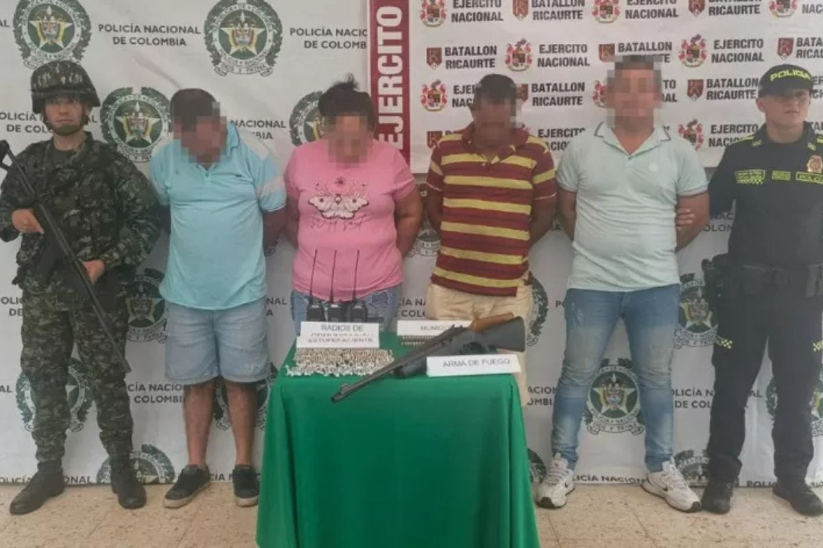 Los hechos se registraron durante diligencias de registro y allanamiento que permitieron la ubicación de tres hombres y una mujer, a quienes se les halló en su poder un arma de fuego tipo escopeta, cartuchos de diferente calibre, radios de comunicaciones y estupefacientes.