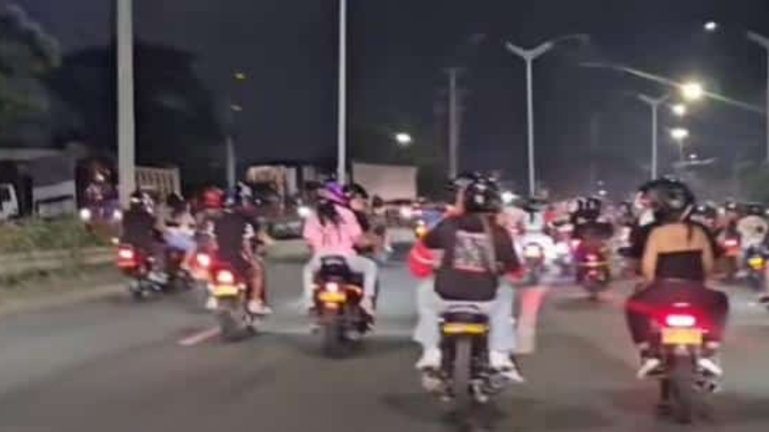 En redes sociales circulan videos que muestran a decenas de motociclistas transitando por sectores como Villa Carolina y la Avenida Circunvalar, sin que se evidencie control de las autoridades. En una de las grabaciones incluso se observa un presunto raponazo de un celular cometido por una mujer que viajaba como parrillera en una de las motos participantes de la caravana.