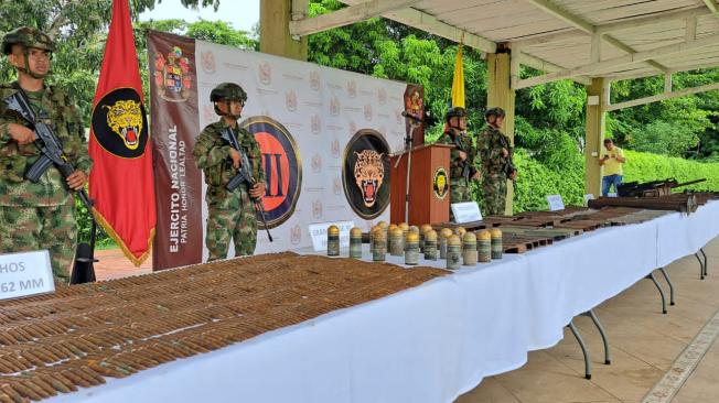 En ese lugar fueron hallados cuatro morteros de 60 milímetros, 18 granadas de 40 milímetros, cuatro lanzagranadas, una ametralladora, más de mil cartuchos y proveedores de diferentes calibres, entre otros elementos.