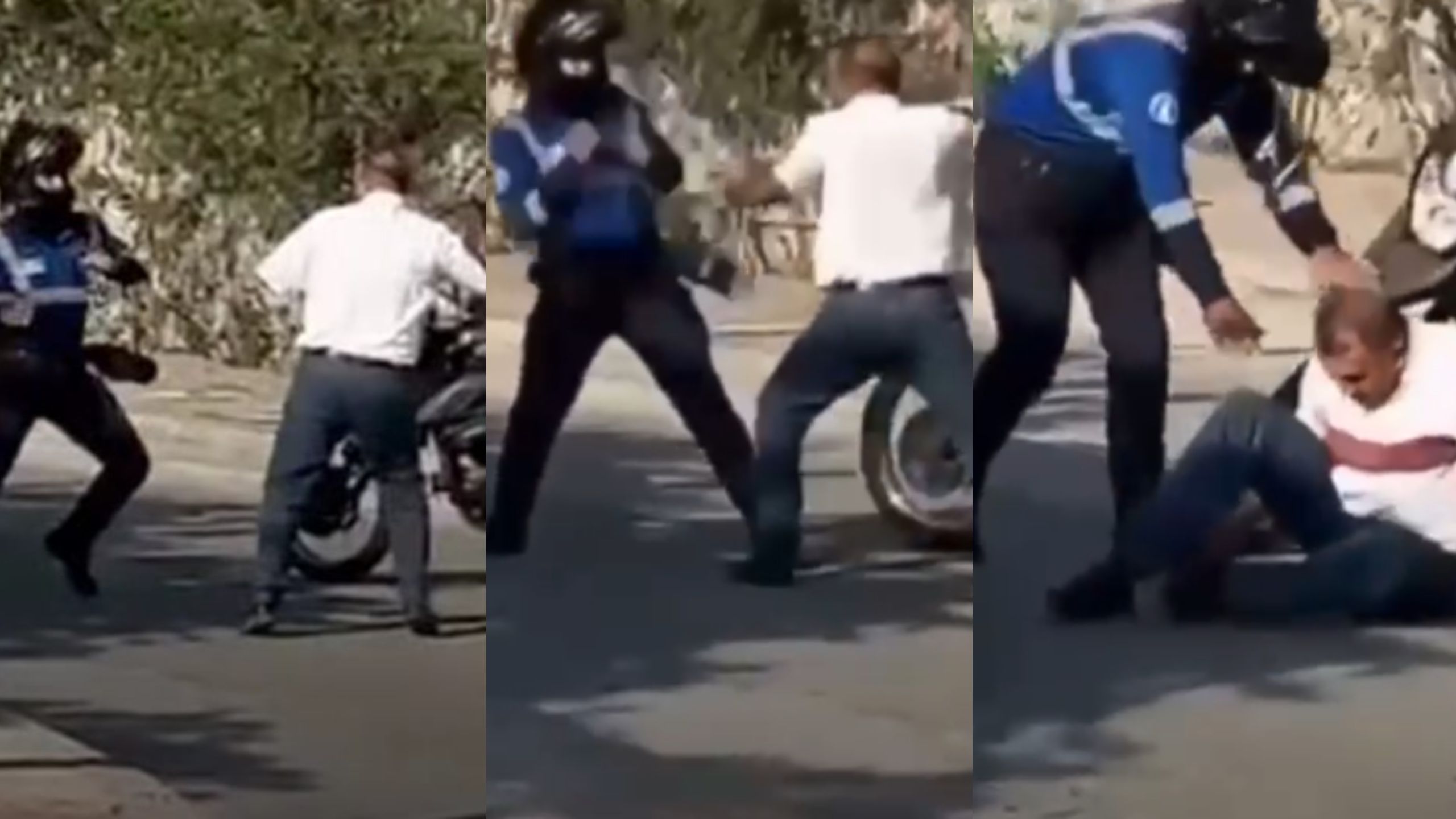 En medio de la discusión, el conductor descendió del taxi portando una varilla y se abalanzó contra el agente de tránsito, lo que desencadenó un forcejeo entre ambos. Durante el altercado, el taxista intentó agredir al funcionario mientras se producían empujones; en medio de la confrontación el conductor cayó al suelo, momento en el que el agente logró desarmarlo.