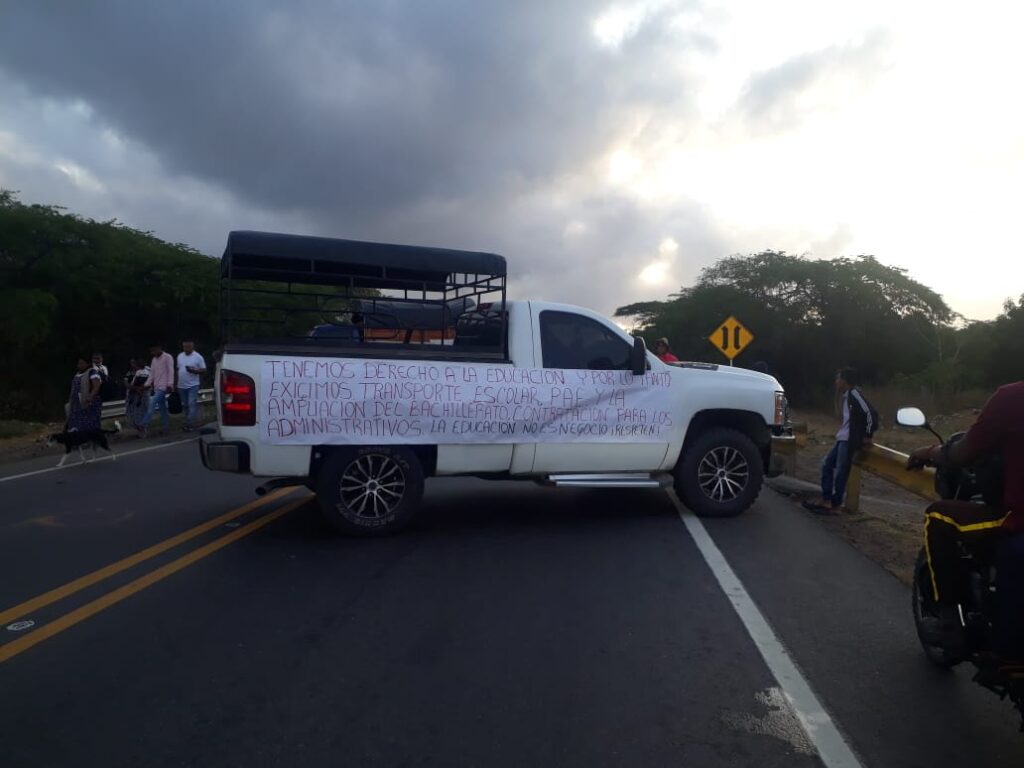 El cierre de la carretera está motivado al reinicio del calendario académico, sin que los estudiantes cuenten con el servicio de transporte ni alimentación escolar, tal como se los habían prometido.