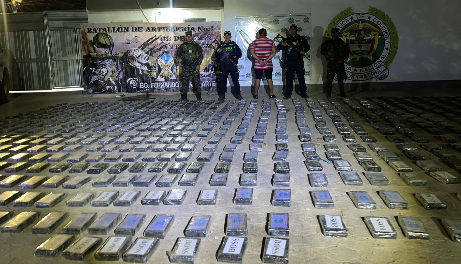 En desarrollo del Plan de Campaña Ayacucho Plus, soldados del Batallón de Artillería de Defensa Antiaérea N.° 1, adscritos a la Décima Brigada, en coordinación con la Policía Nacional, incautaron en las últimas horas un cargamento de 619 kilos de clorhidrato de cocaína en zona rural del municipio de Uribia, La Guajira.