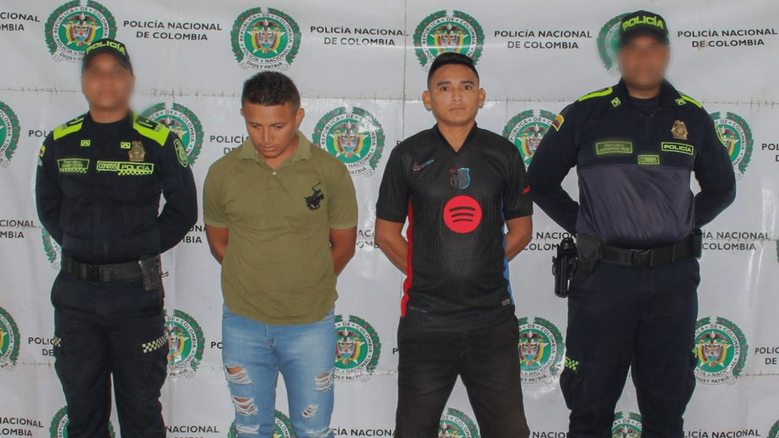 La intervención policial se realizó en la calle 7 con carrera 1 del barrio Arriba, tras un proceso de seguimiento que permitió ubicar a Armando Barros Castro, de 21 años, y a Wuilfy Segundo Paz Ramírez, de 30. Ambos eran requeridos por autoridades judiciales por su posible participación en múltiples robos registrados en este tramo vial, considerado uno de los más transitados y también uno de los más vulnerables por el flujo constante de vehículos particulares y de transporte público.