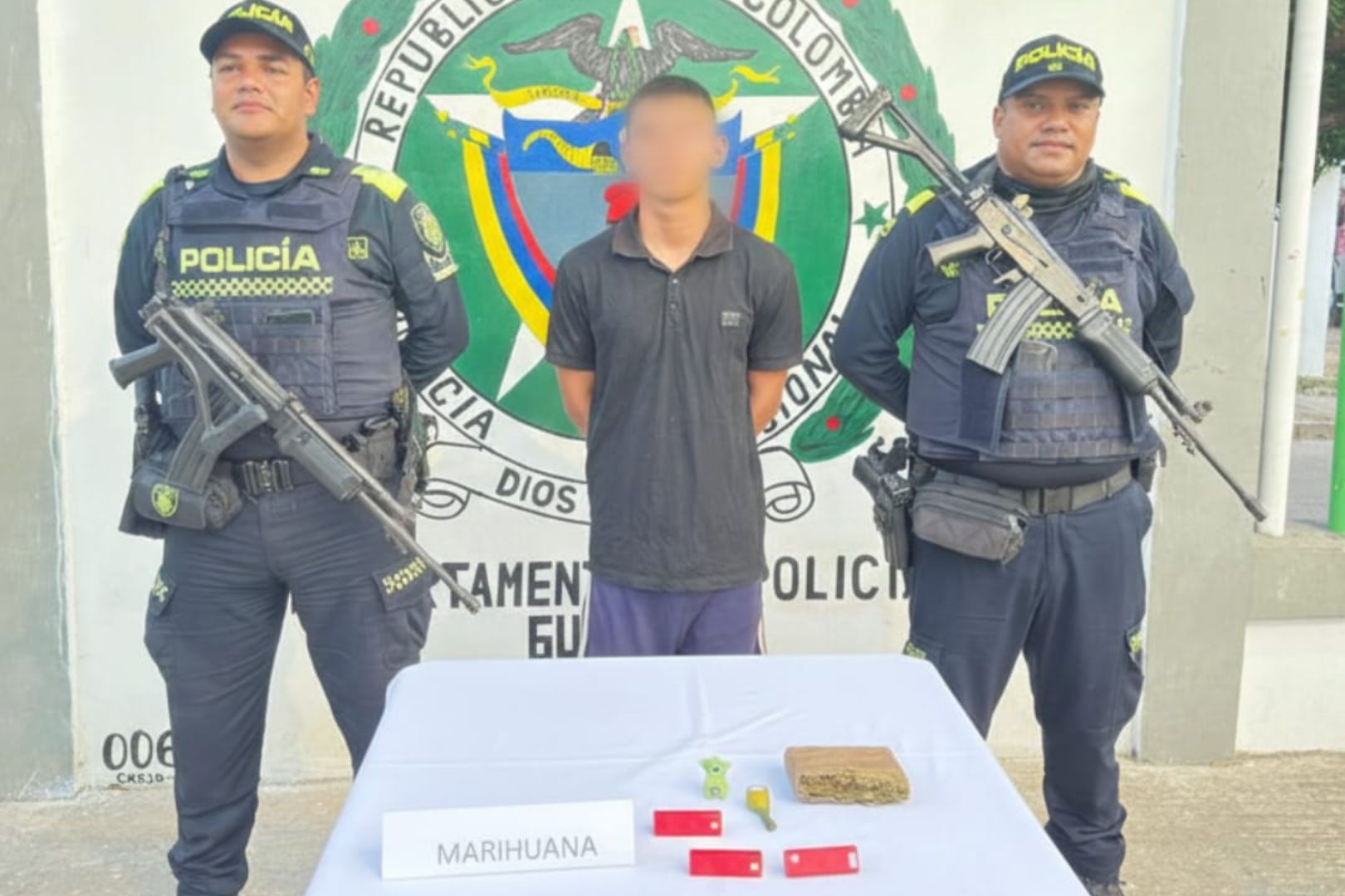 El joven fue informado de sus derechos como persona capturada y trasladado ante la Fiscalía General de la Nación, en la Unidad de Reacción Inmediata (URI) de Maicao, junto con los elementos incautados.