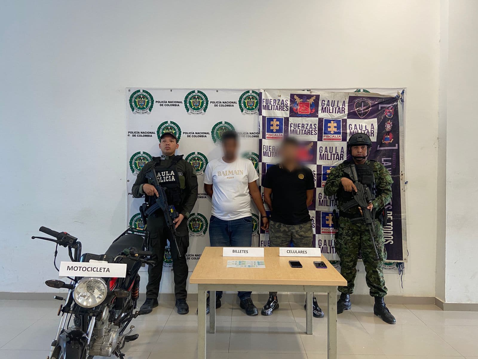 En el marco del desarrollo del Plan Antiextorsión, personal del Gaula Guajira, en conjunto con el Gaula Militar y bajo la coordinación de la Fiscalía General de la Nación, lograron la captura en flagrancia de dos individuos señalados del delito de extorsión.