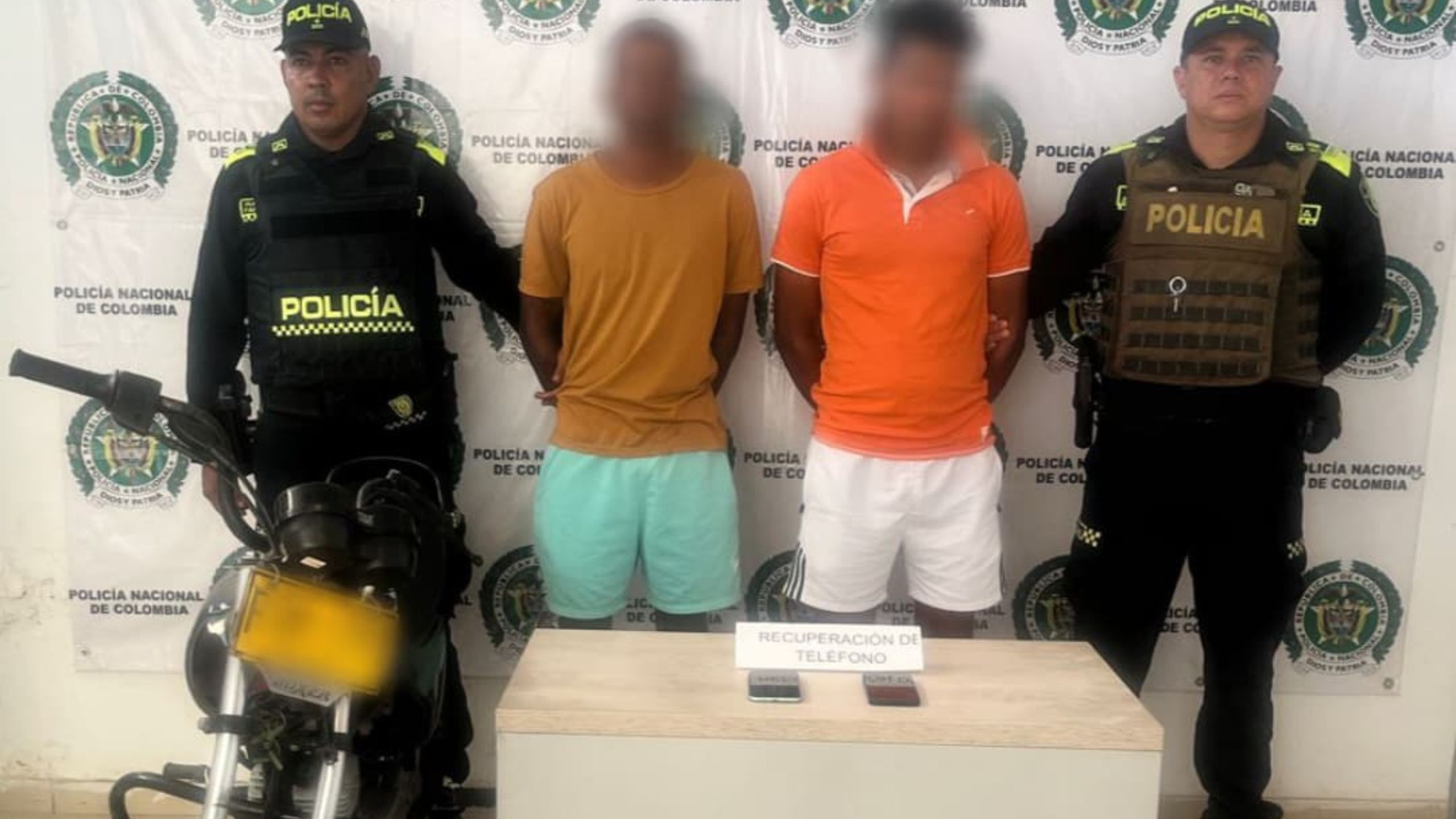 Los hechos se presentaron cuando los uniformados, en labores de patrullaje, escucharon voces de auxilio y acudieron al lugar señalado. Allí, dos ciudadanos informaron que habían sido intimidados y despojados de sus teléfonos celulares por dos sujetos.