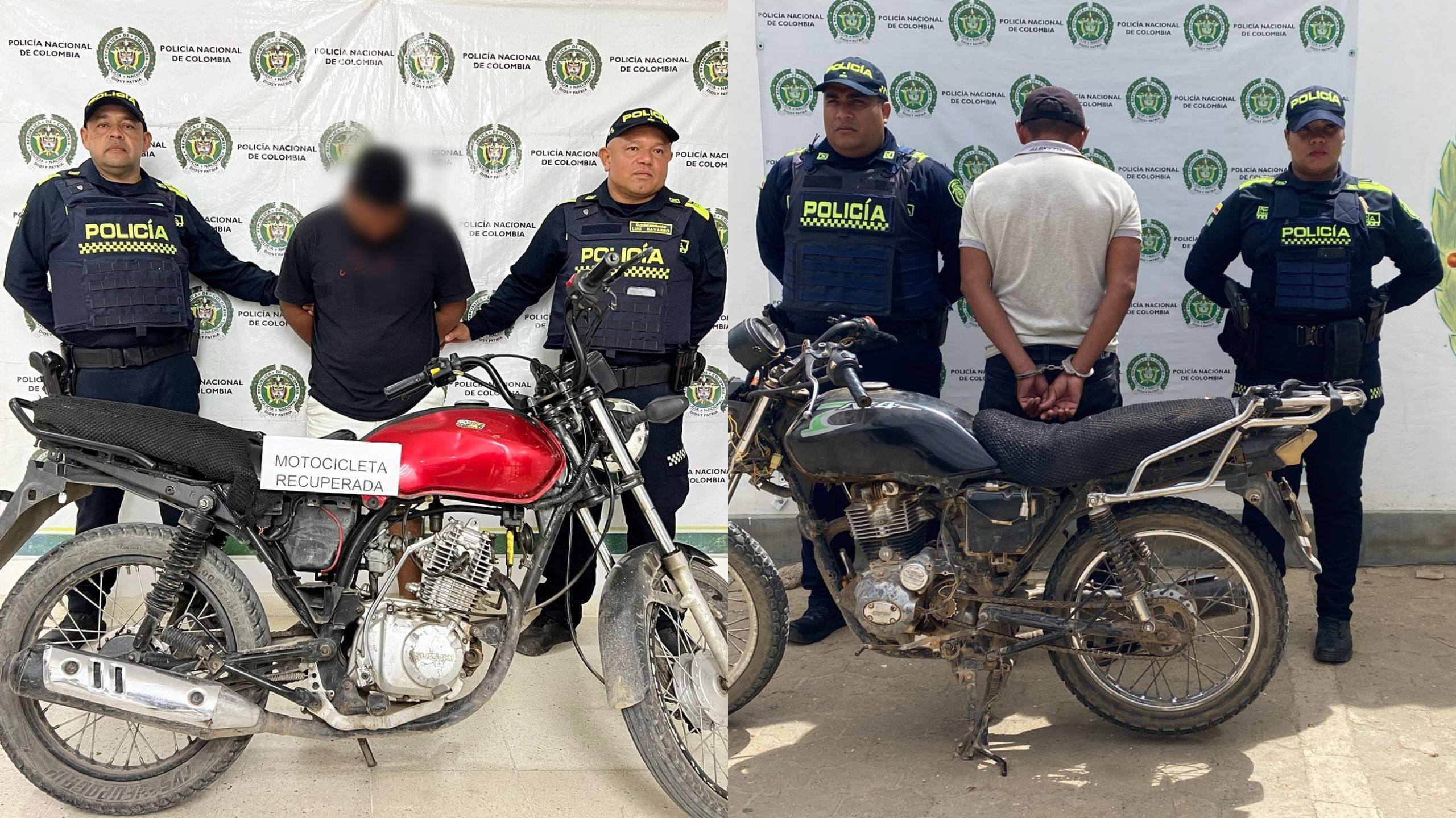 Capturan a dos hombres por receptación y recuperan motocicletas con reporte de hurto en La Guajira
