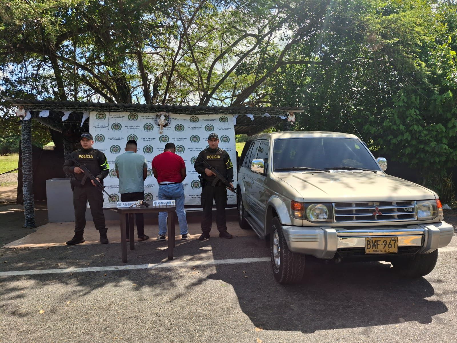 El procedimiento se desarrolló en el kilómetro 53 de la vía que comunica a Palomino con Riohacha, donde los uniformados detuvieron un vehículo tipo campero, de placas BMF-967, en el que se movilizaban José Darvis Rivadeneira Contreras y Brayan Damián García Carbono. Durante el registro al automotor, se halló en su interior un arma de fuego tipo revólver, marca Smith & Wesson, motivo por el cual se procedió a materializar las capturas.