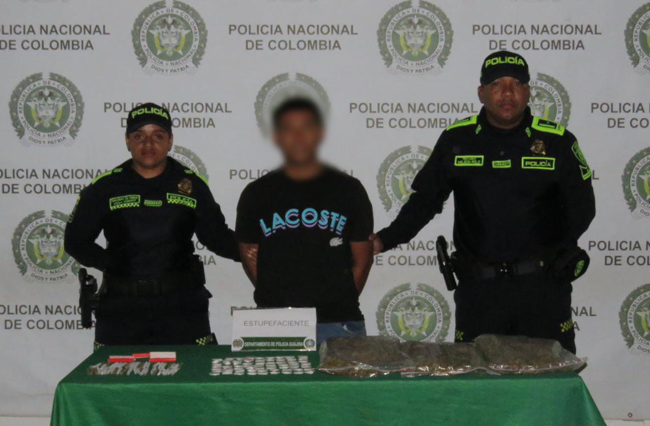 En el marco de las estrategias orientadas a combatir el homicidio y debilitar las economías ilícitas en el municipio de Riohacha, unidades de la Seccional de Investigación Criminal de la Policía Nacional, en coordinación con la Fiscalía General de la Nación, lograron la captura en flagrancia de una persona por el delito de tráfico, fabricación o porte de estupefacientes.