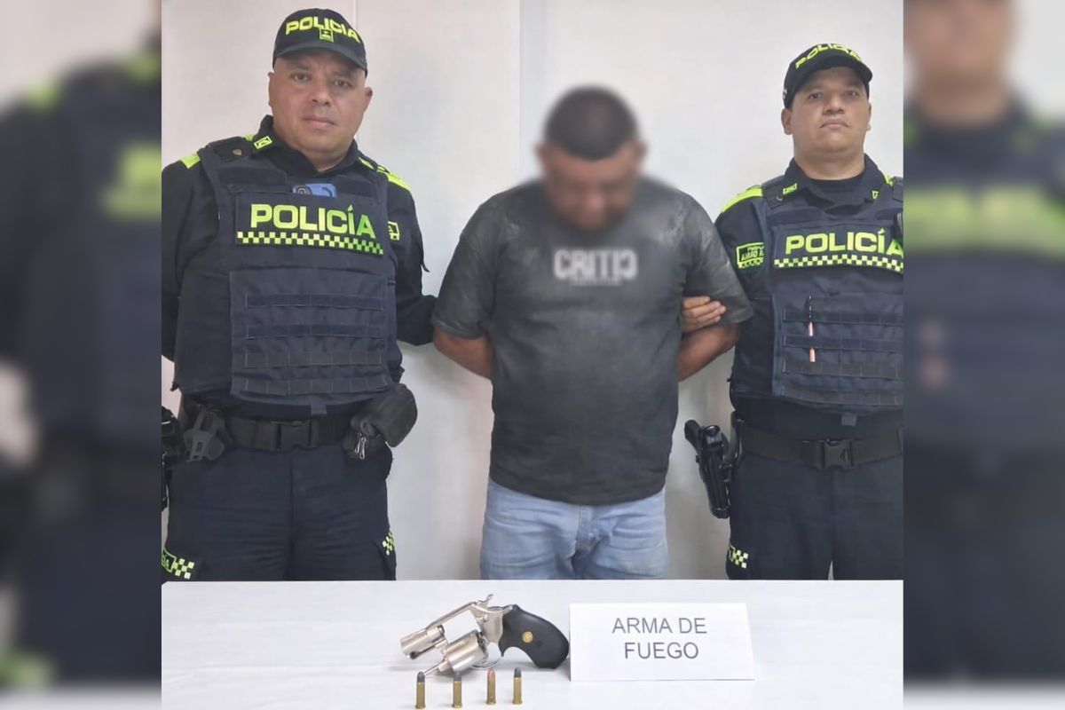 Durante el procedimiento, los uniformados le hallaron al sujeto en la pretina de su pantalón un arma de fuego calibre 38 junto con cuatro cartuchos. Al solicitarle la documentación que acreditara la legalidad del arma, el ciudadano manifestó no portar ningún tipo de permiso.