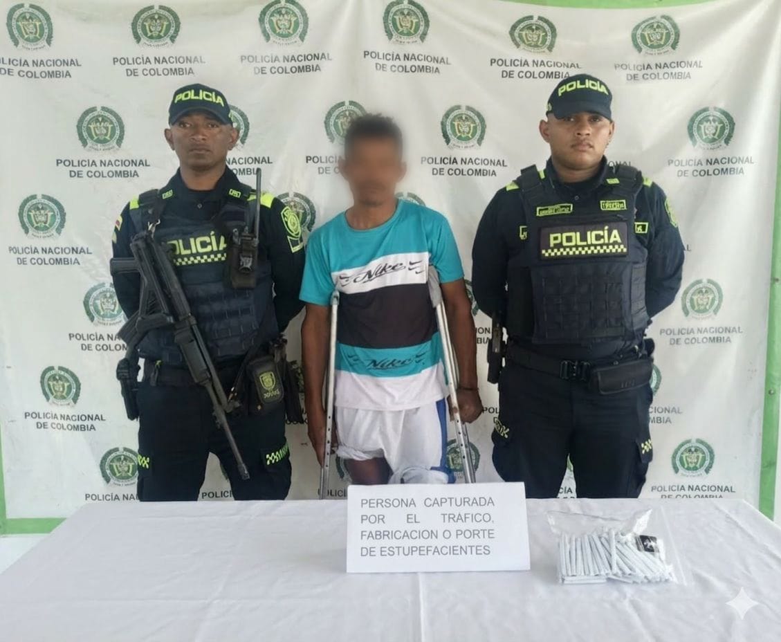 En desarrollo de actividades de vigilancia, control y prevención adelantadas por la Policía Nacional en el municipio de Maicao, fue capturado un hombre de 48 años por el presunto delito de tráfico, fabricación y porte de estupefacientes, en un procedimiento realizado en el barrio Pastrana.