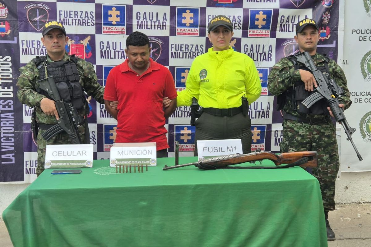 El capturado fue identificado como José Vicente Peñaranda, quien fue detenido por uniformados del Gaula Militar de La Guajira, como parte de las acciones para garantizar la seguridad en el municipio de Albania.