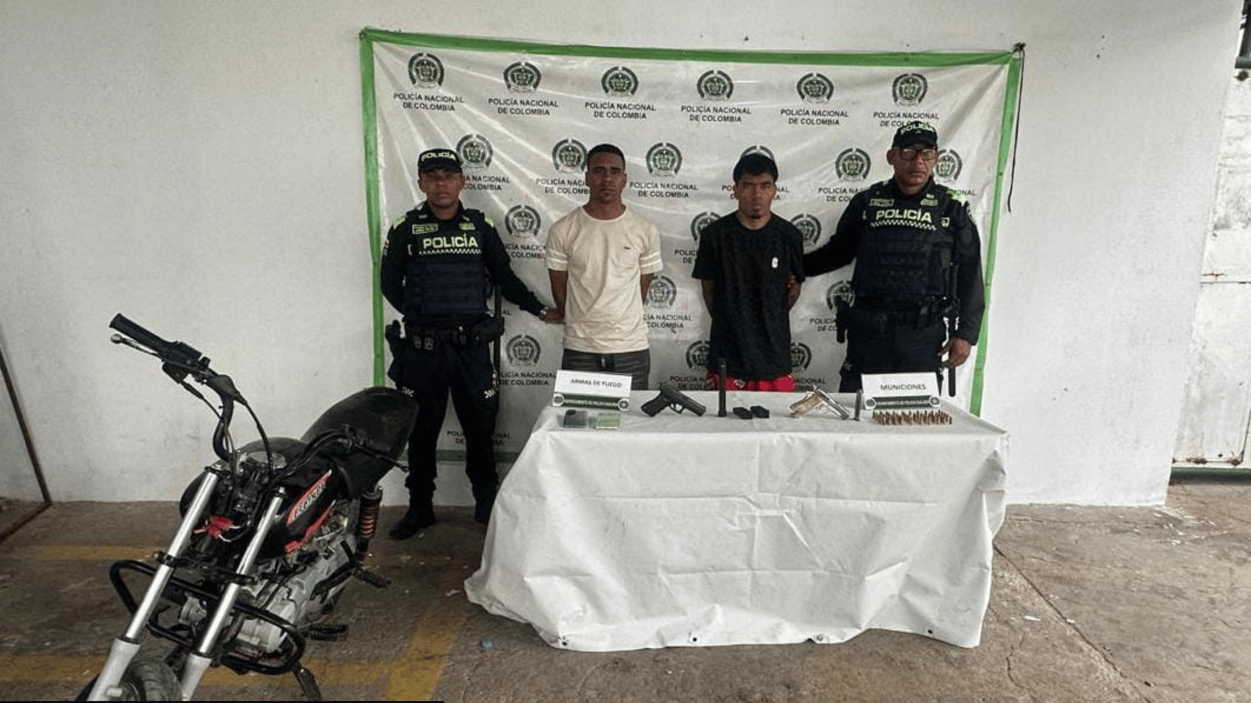 Durante el operativo, las autoridades incautaron dos armas de fuego tipo pistola —una marca Glock y otra Star, ambas calibre 9 mm—, cuatro proveedores, 50 cartuchos del mismo calibre, dos celulares y una motocicleta Bajaj línea Boxer, elementos que, según los investigadores, estarían relacionados con hechos violentos ocurridos recientemente en el municipio.