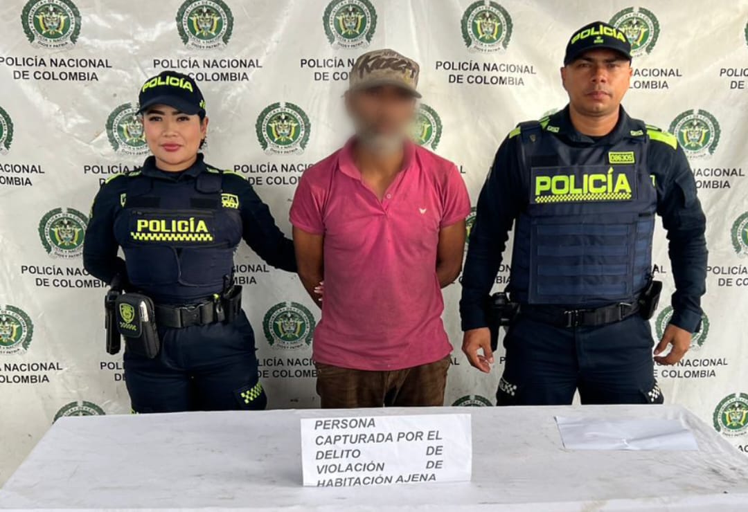 La oportuna reacción de la Policía Nacional permitió la captura de un hombre de 52 años por el presunto delito de violación a habitación ajena, en hechos registrados en la calle 10A con carrera 3E del barrio Jorge Arrieta, en el municipio de Maicao.