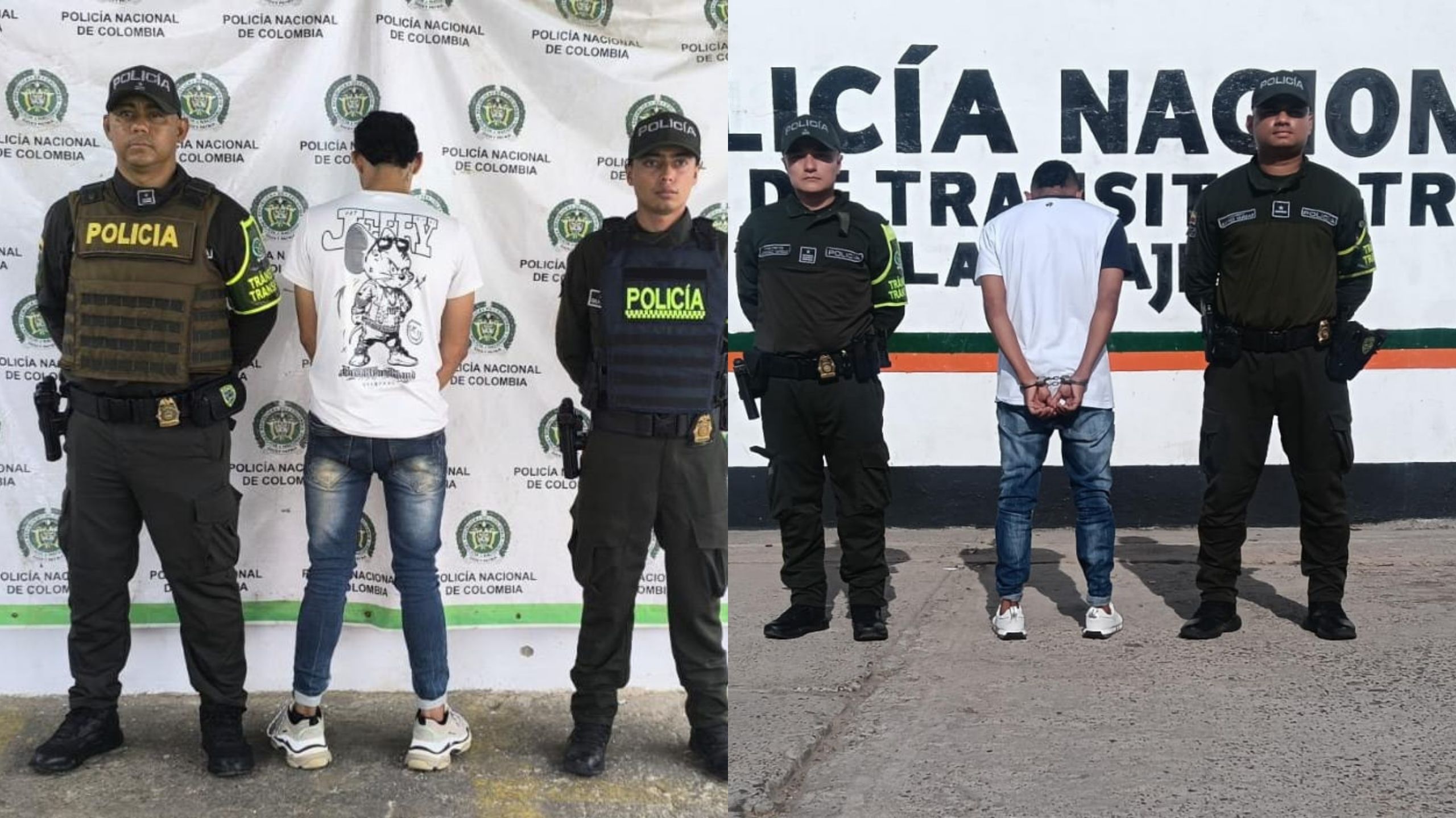 El primer procedimiento se registró en la vía Palomino–Riohacha, a la altura del kilómetro 53, donde fue capturado un hombre de aproximadamente 30 años, requerido por orden judicial por los delitos de hurto calificado agravado en concurso con lesiones personales. El detenido fue puesto a disposición del juzgado solicitante.