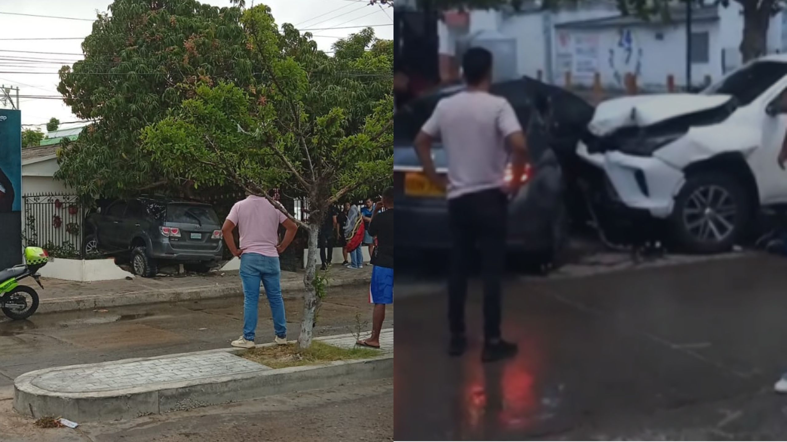 El segundo accidente se registró en la calle 7 (Ancha) con carrera 3, en pleno centro de la capital de La Guajira. En este caso, el conductor de una camioneta de alta gama habría perdido el control del vehículo e impactó contra un automóvil que se encontraba estacionado.