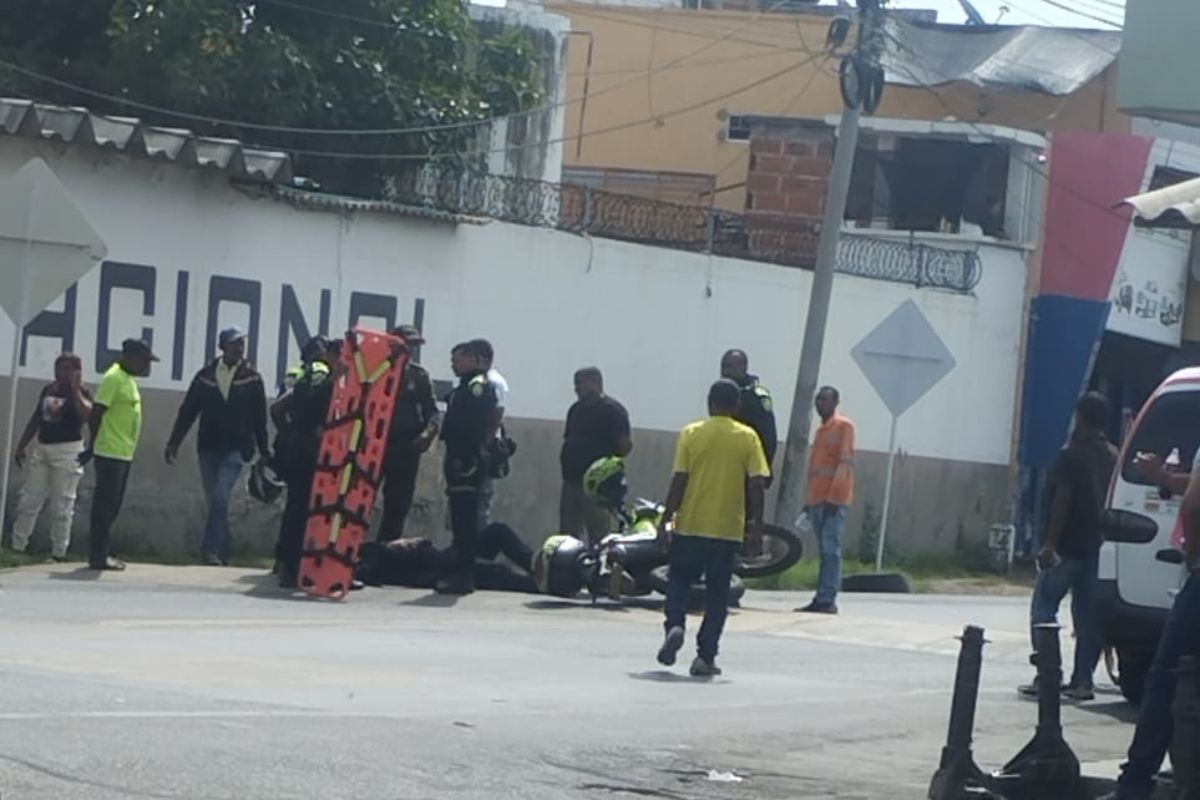 Al parecer una buseta que cubre la ruta Riohacha – Maicao intento hacer una vuelta en zona no permitida impactando contra los uniformados que se desplazaban en una motocicleta dejándolos tendidos en el pavimento.