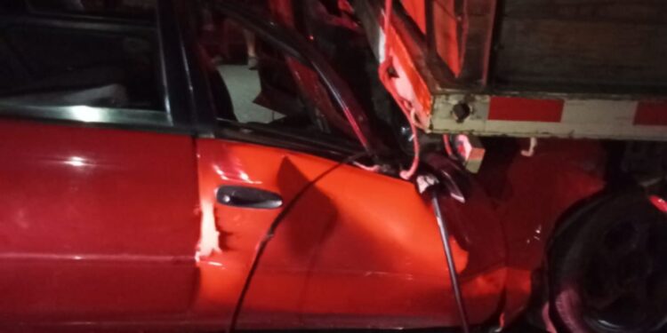 Un fuerte accidente de tránsito se registró en la noche del domingo 9 de febrero en la salida de Riohacha hacia el municipio de Maicao, cuando un automóvil rojo colisionó por la parte trasera de un camión 350 que se desplazaba en el mismo sentido.