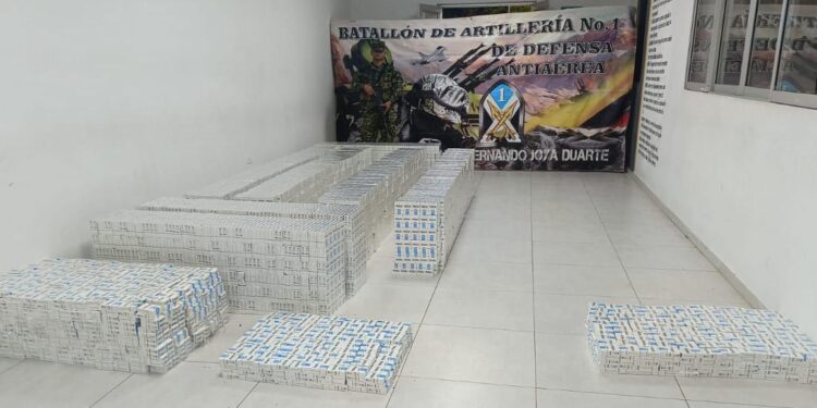 En una operación realizada en la madrugada de este viernes, tropas del Batallón de Artillería de Defensa Antiaérea N.°1 (BAADA1), adscritas a la Décima Brigada del Ejército Nacional, incautaron 23.534 unidades de cigarrillos de contrabando en el casco urbano del municipio de Albania, La Guajira.