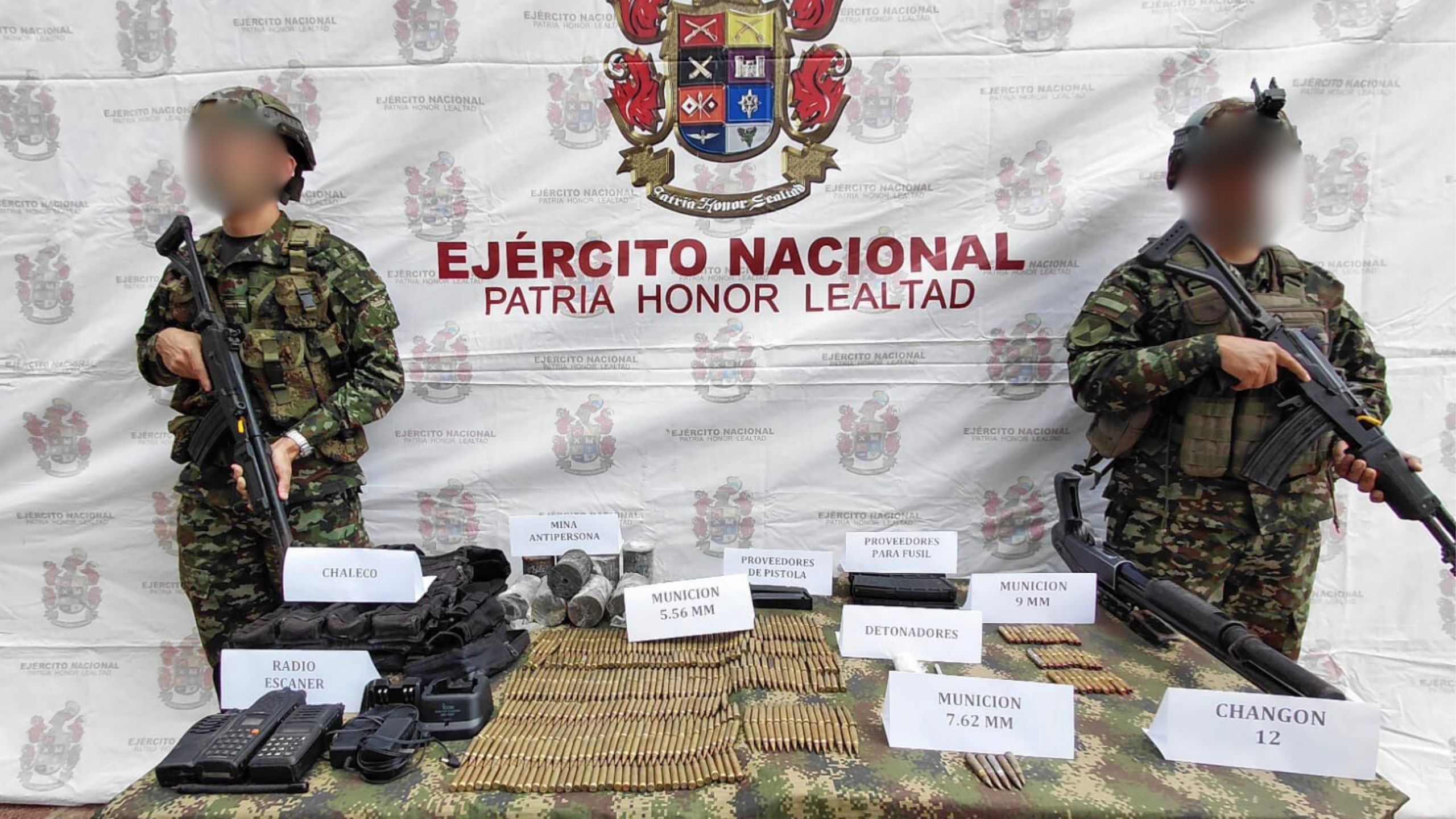 Durante el operativo, realizado en la tarde del miércoles 14 de enero, las tropas hallaron seis proveedores y 444 cartuchos de diferentes calibres, nueve minas antipersona, equipos de comunicaciones y otros elementos logísticos. En el lugar también fueron inmovilizadas dos camionetas que, según las autoridades, estarían vinculadas a las actividades del grupo ilegal.