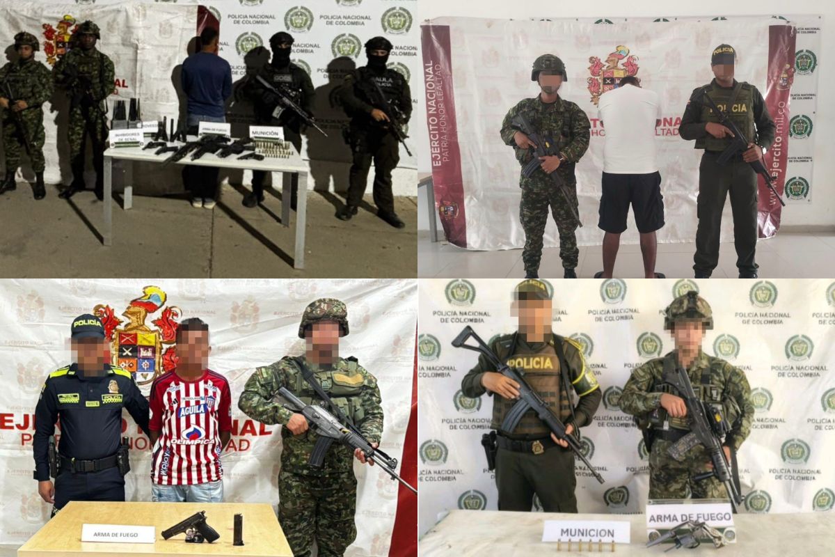 En desarrollo de estas acciones fueron capturadas cuatro personas por el delito de fabricación, tráfico y porte de armas de fuego o municiones. De acuerdo con la información oficial, los detenidos presuntamente integran el componente criminal de Los Pachenca y delinquían en los municipios de Maicao y Riohacha. Los capturados quedaron a disposición de las autoridades competentes para su respectiva judicialización.