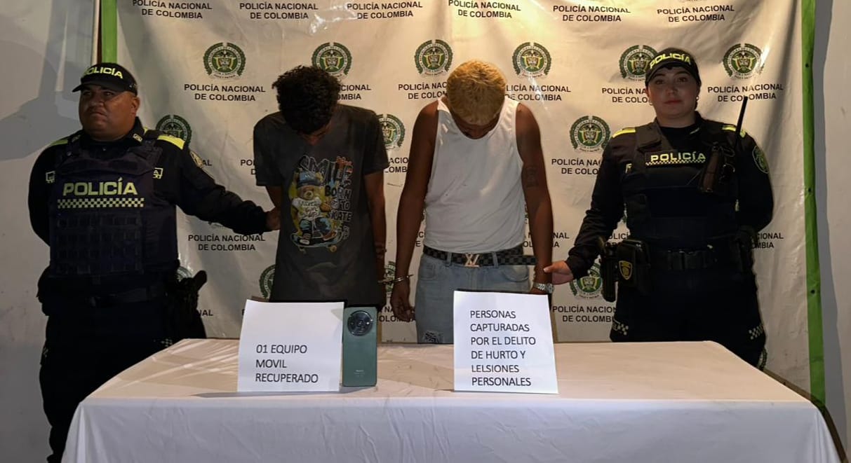 En el municipio de Maicao, una oportuna intervención de la Policía Nacional permitió la captura de dos hombres de 25 años de edad, señalados de haber agredido físicamente a una ciudadana y despojarla de su teléfono celular.