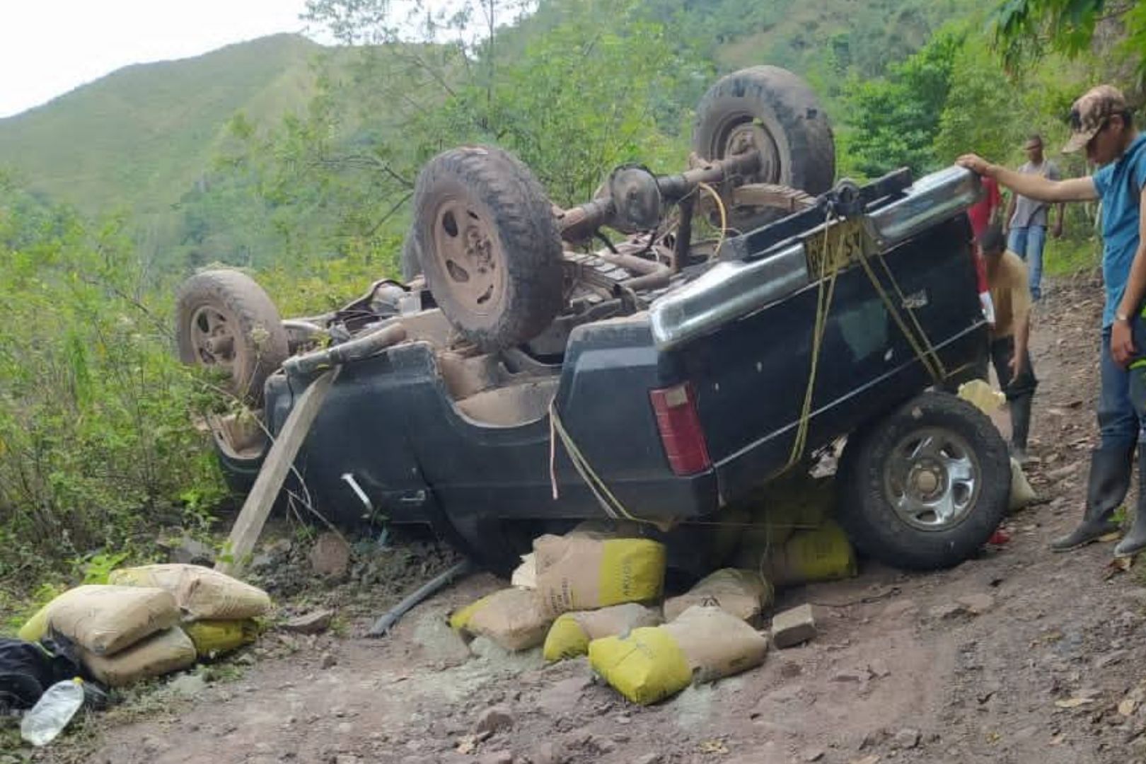 Según información preliminar, el hecho ocurrió cuando la camioneta, que transportaba aproximadamente 30 bultos de cemento destinados a obras de construcción de un proyecto de vivienda rural, intentaba subir un tramo de la vía.