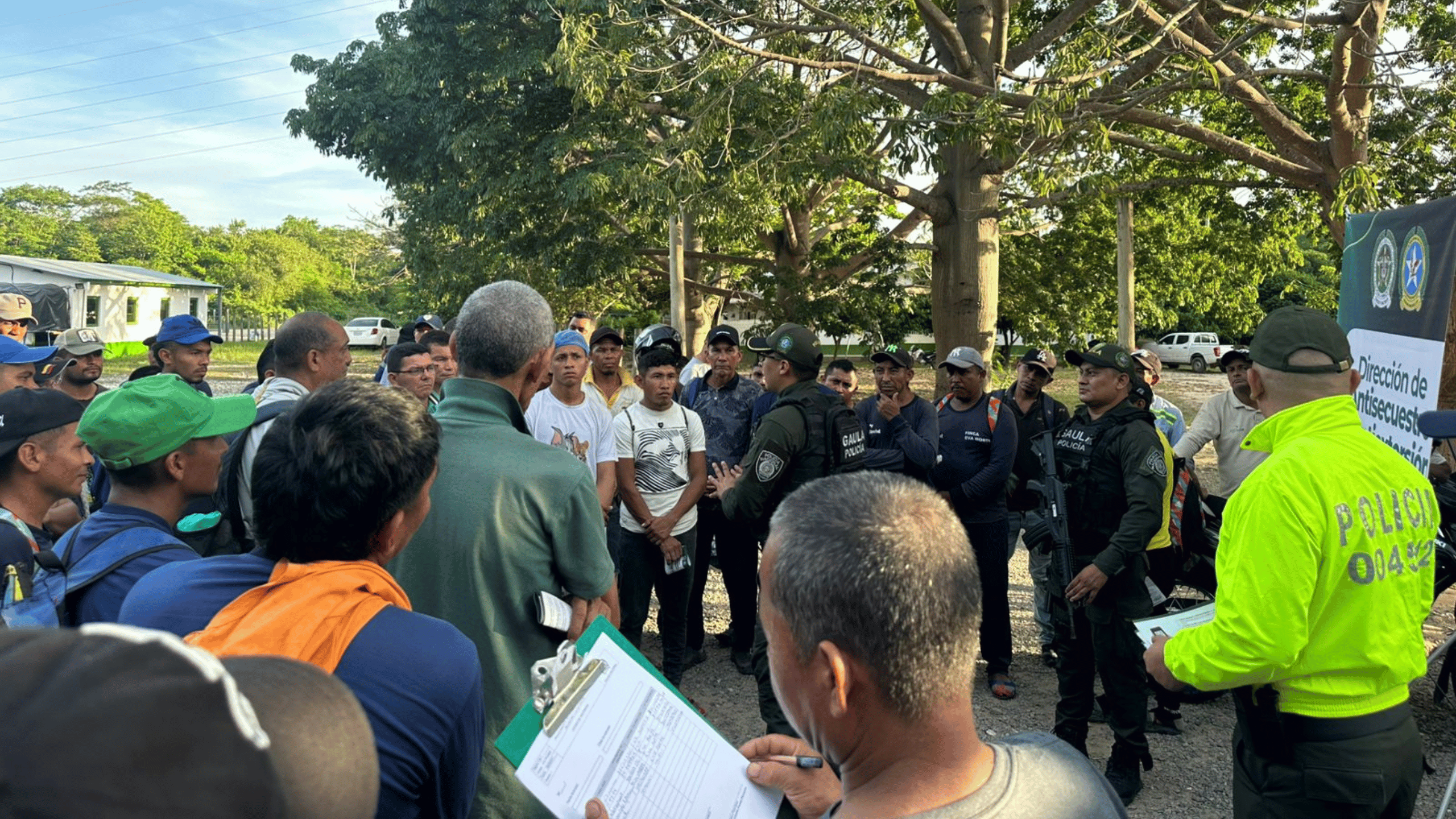 El Gaula de la Policía Nacional, en articulación con la Seccional de Investigación Criminal (SIJIN), adelantó una jornada de prevención y sensibilización dirigida al gremio agricultor de las fincas bananeras ubicadas sobre la Troncal del Caribe, en la vía que conecta a Riohacha con Palomino.