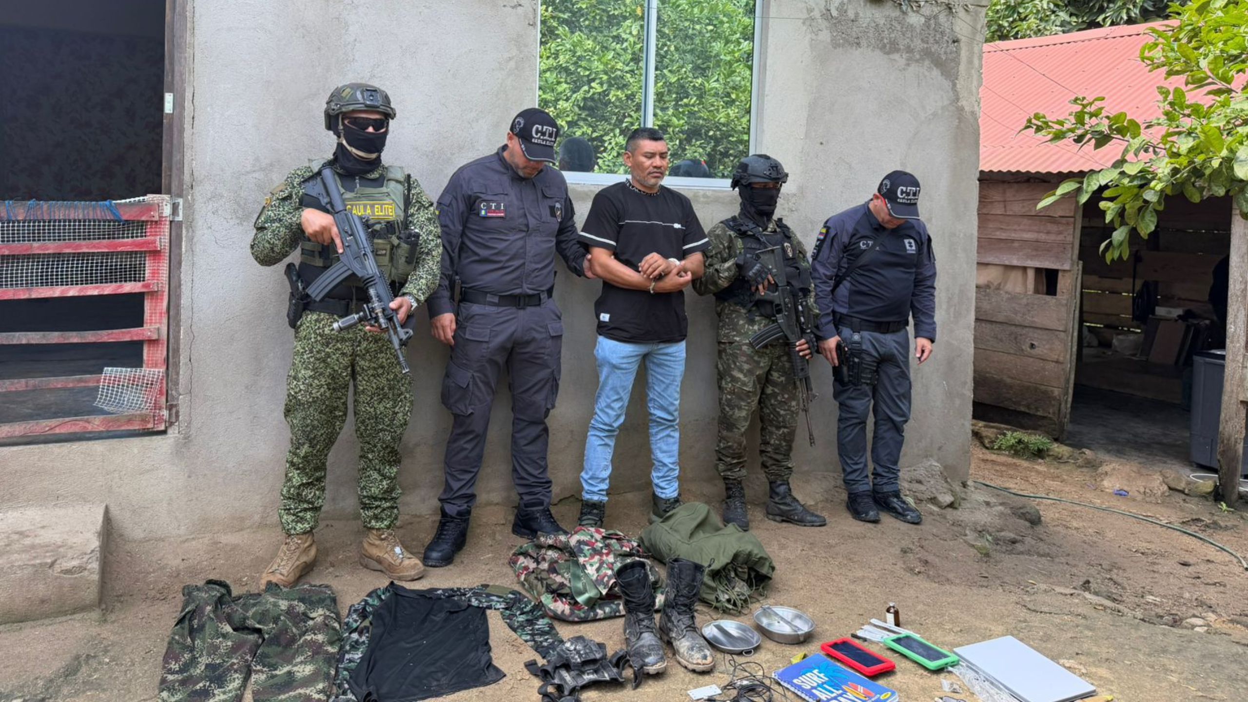 En el operativo también fueron incautados una pistola, tres proveedores, 93 cartuchos, y equipos de comunicación, entre ellos un radio, una antena Starlink, dos teléfonos celulares, dos tabletas, una cámara, un amplificador de señal, además de material de intendencia.
