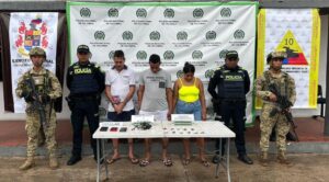 En Maicao fueron detenidos Charles José Cantillo Palacio, de 26 años; Greilys Yuleika Miranda Rojas, de 29; y Jhon Franklin Miranda Arboleda. A los dos primeros se les halló un revólver calibre 32 mm, 86 cigarrillos artesanales de marihuana y 53 papeletas de cocaína. Miranda Arboleda portaba 20 cigarrillos de marihuana. Según las autoridades, estos sujetos integrarían el grupo delincuencial común organizado ‘Los Mateos’, con nexos con el ‘Tren de Aragua’ para el tráfico local de estupefacientes mediante el modelo de tercerización criminal.