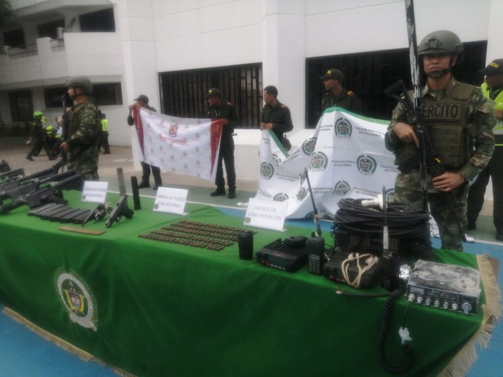 Además del alcaloide, los uniformados encontraron 5 armas de largo alcance, 2 armas cortas, 11 proveedores para fusil, munición de diferentes calibres, 7 radios base, 3 radios pequeños y prendas tácticas.