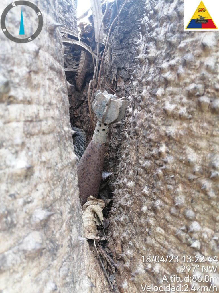 La fuente militar informó que luego de dar con el hallazgo, se procedió con la destrucción del artefacto explosivo, una granada de mortero calibre 60 milímetros que se encontraba entre la vegetación.