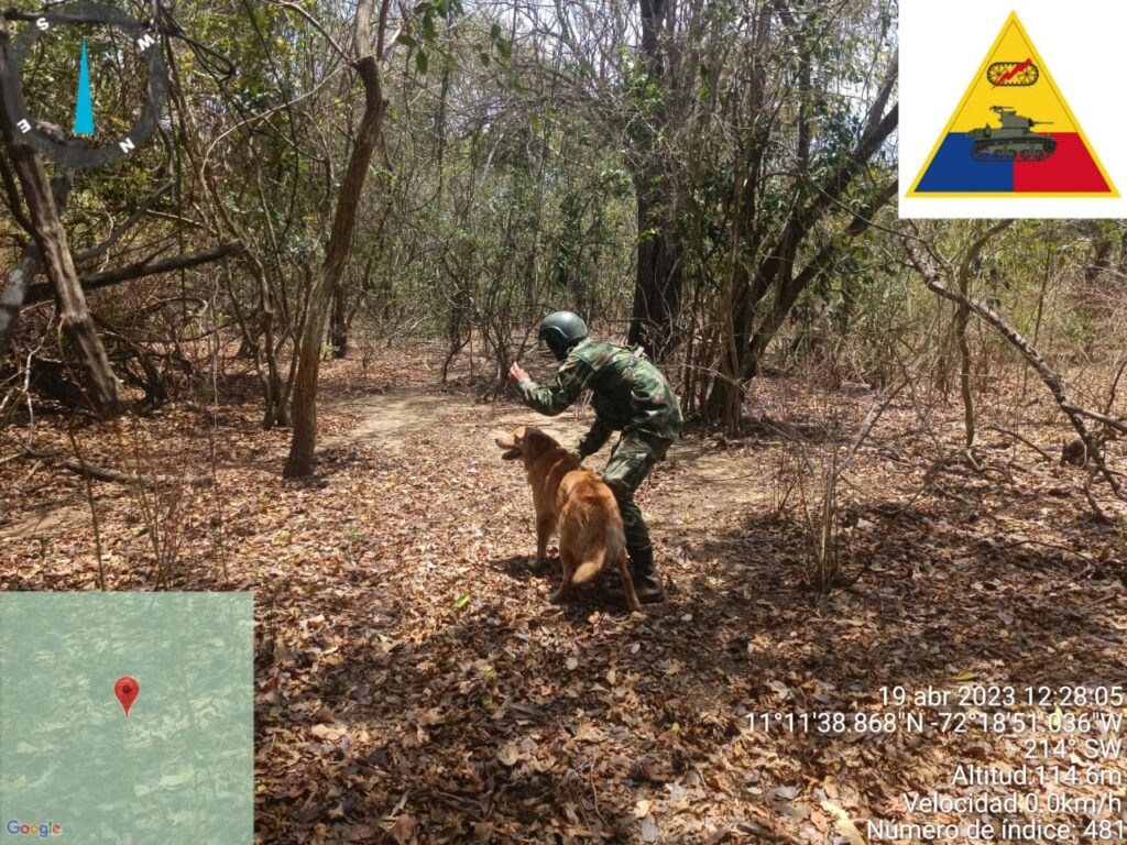 El hallazgo se registró en la vereda La Yaruna en el corregimiento de Carraipía, zona rural de Maicao, por parte de los soldados del Pelotón Australia 2 del Grupo de Caballería Blindado Mediano General Gustavo Matamoros D´Costa, que busca resguardar la seguridad en territorio limítrofe.