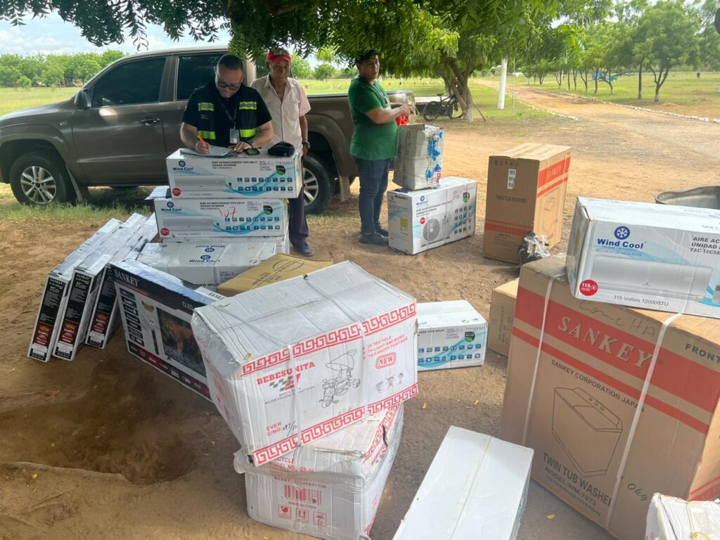 La mercancía está representada en botellas de whisky de diferentes etiquetas, pacas de cigarrillos de varias marcas, aires acondicionados, televisores y sus soportes, material que aún no ha sido cuantificado.