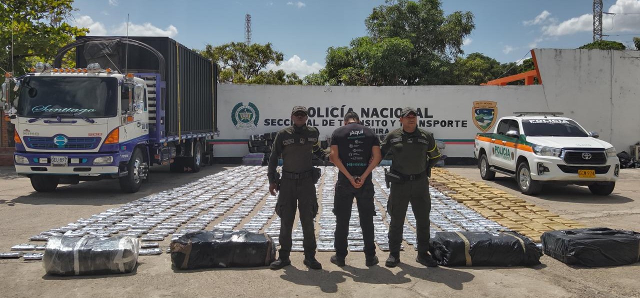 El camión, cuyo valor comercial asciende a los $180 millones, fue inmovilizado y, junto con la sustancia incautada y el capturado, fue puesto a disposición de la Fiscalía Especializada contra el Narcotráfico. El conductor deberá responder por el delito de tráfico, fabricación o porte de estupefacientes.