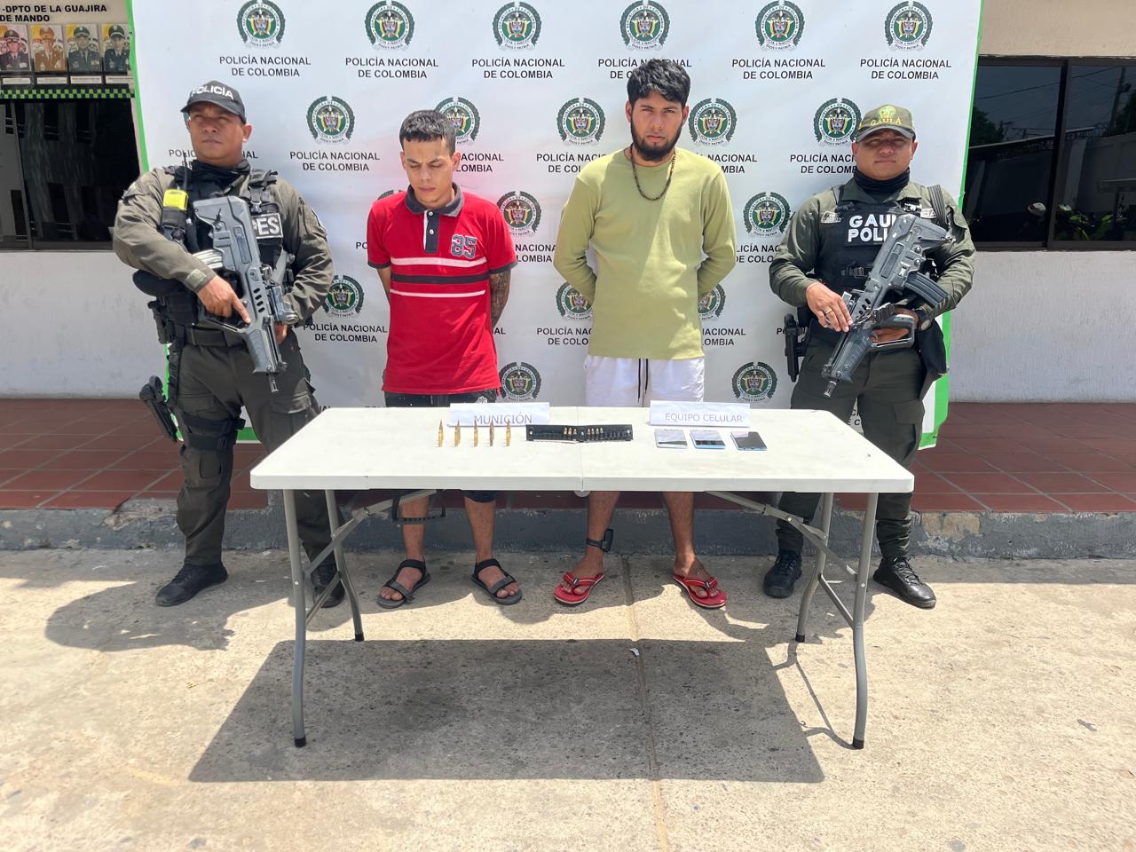 En el marco de la lucha contra el multicrimen, la Policía Nacional, a través del GAULA de La Guajira y con apoyo del Grupo de Operaciones Especiales (GOES), logró la captura de dos hombres que portaban municiones de uso restringido en el municipio de Maicao.
