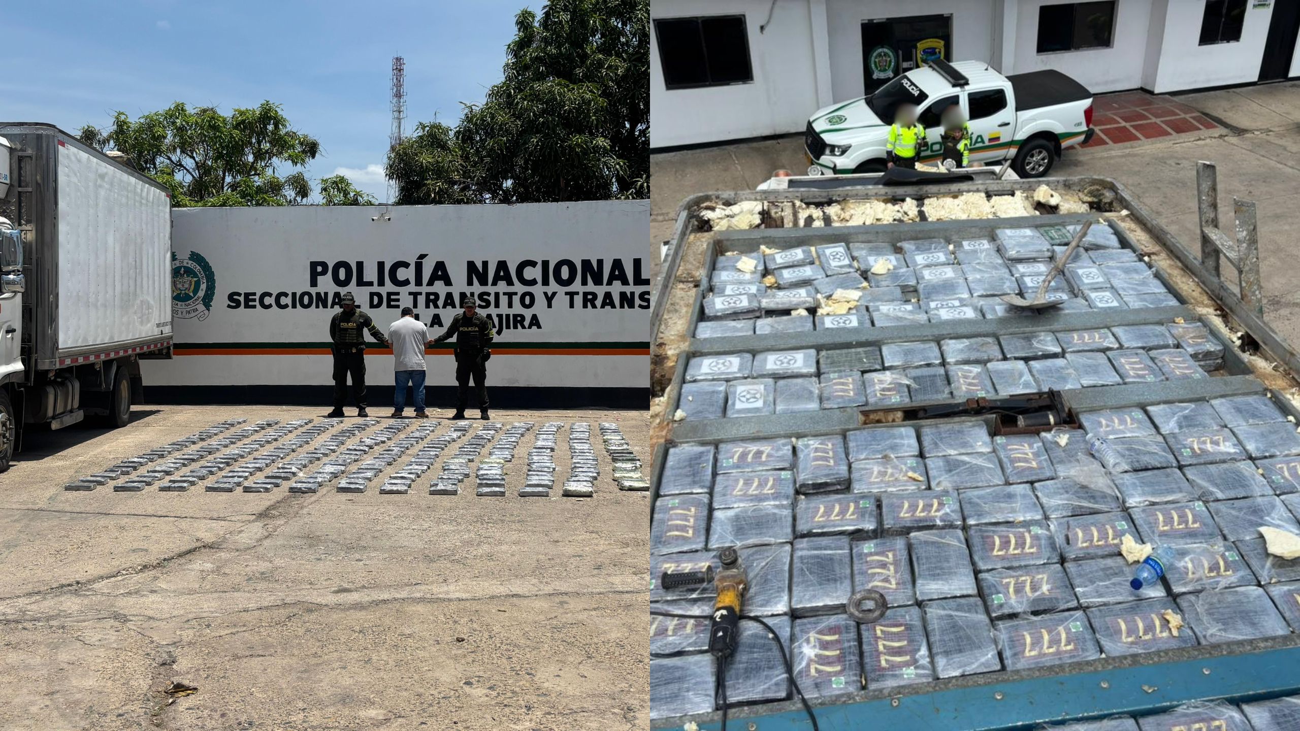 En un operativo de control vial, la Policía Nacional incautó 259 kilogramos de clorhidrato de cocaína que eran transportados en un vehículo tipo furgón en la vía Distracción – Cuestecitas, a la altura del kilómetro 36+800, en el departamento de La Guajira.