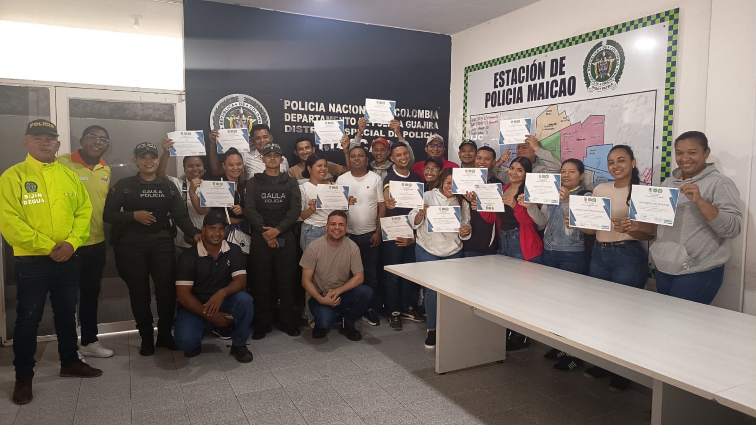 En una estrategia articulada para fortalecer la seguridad y el bienestar de la comunidad, la Policía Nacional, en coordinación con la SIJIN, el Grupo de Protección a la Infancia y Adolescencia (GINAD) y el GAULA, desarrolló el primer curso antiextorsión y antisecuestro dirigido a empleados de las tiendas ARA en el municipio de Maicao.