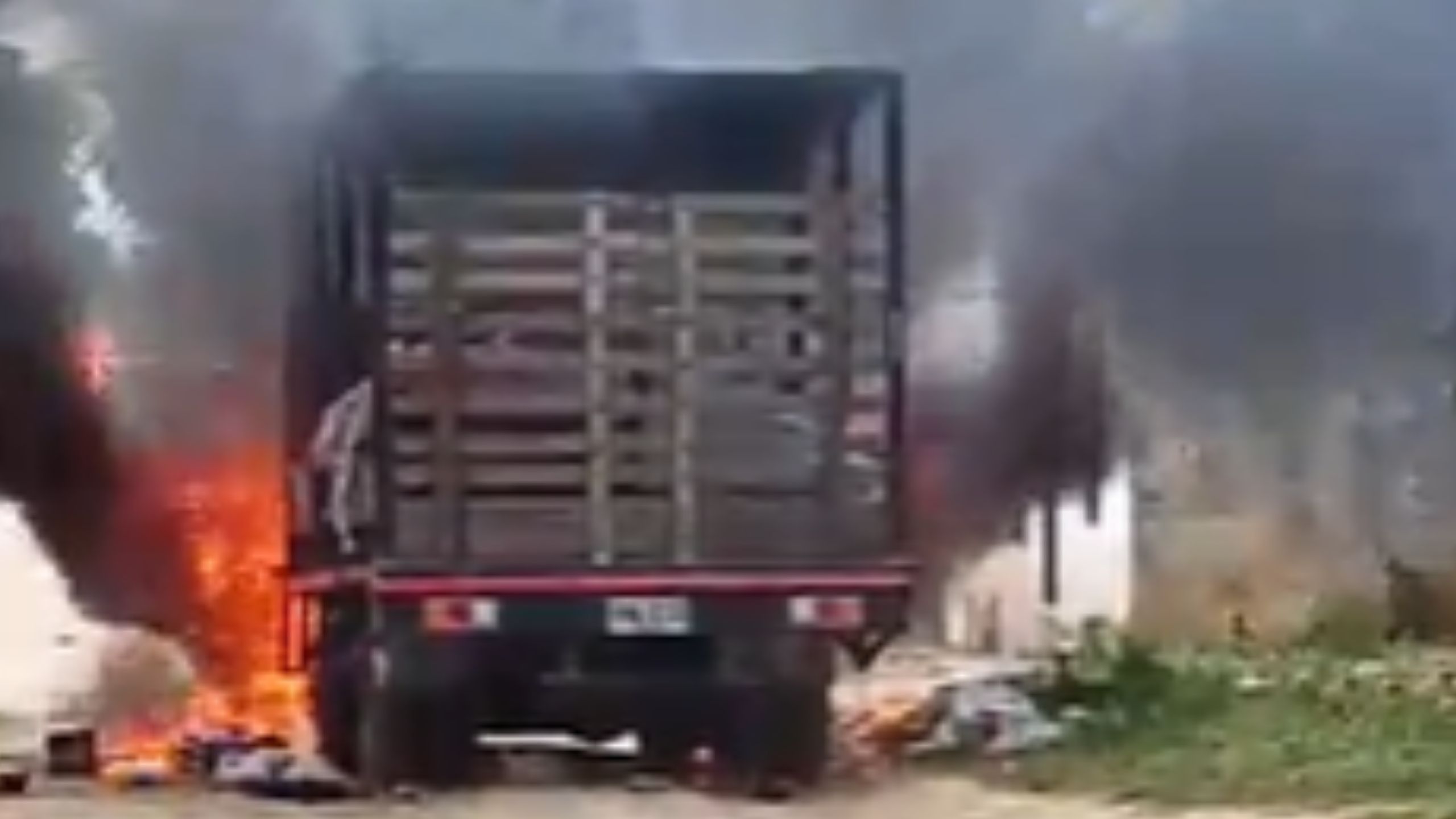 Según la información preliminar, los ocupantes del vehículo fueron obligados a descender y posteriormente los sujetos rociaron gasolina sobre el camión y le prendieron fuego ante la mirada de los residentes del corregimiento.