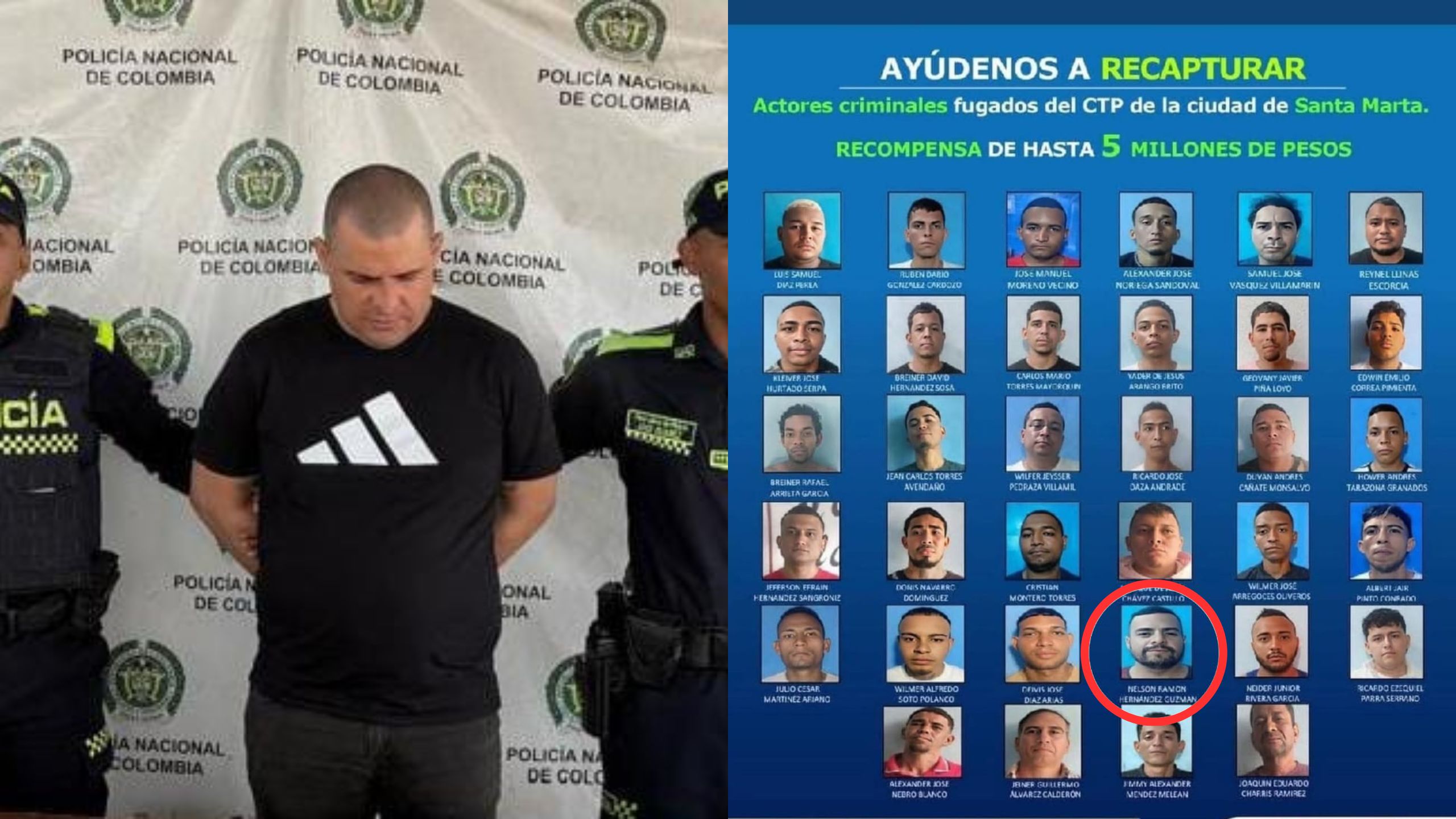 El detenido fue identificado como Nelson Ramón Hernández Guzmán, de 31 años, quien, según verificaciones de Policía Judicial, figuraba como indiciado por este delito tras haberse fugado el pasado 16 de marzo de 2026 de un centro de detención transitorio en Santa Marta, Magdalena. En ese lugar permanecía bajo medida de detención intramural por el delito de extorsión agravada en grado de tentativa.
