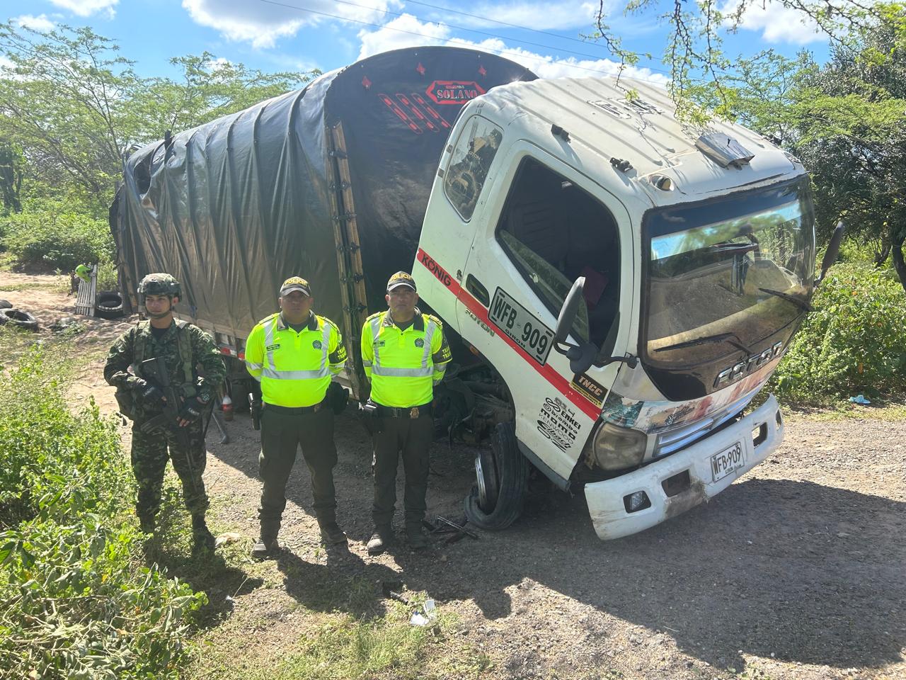 La rápida reacción de la Policía Nacional, a través de su Seccional de Tránsito y Transporte, en coordinación con el Ejército Nacional, permitió la ubicación y recuperación del camión y su carga en la zona rural.