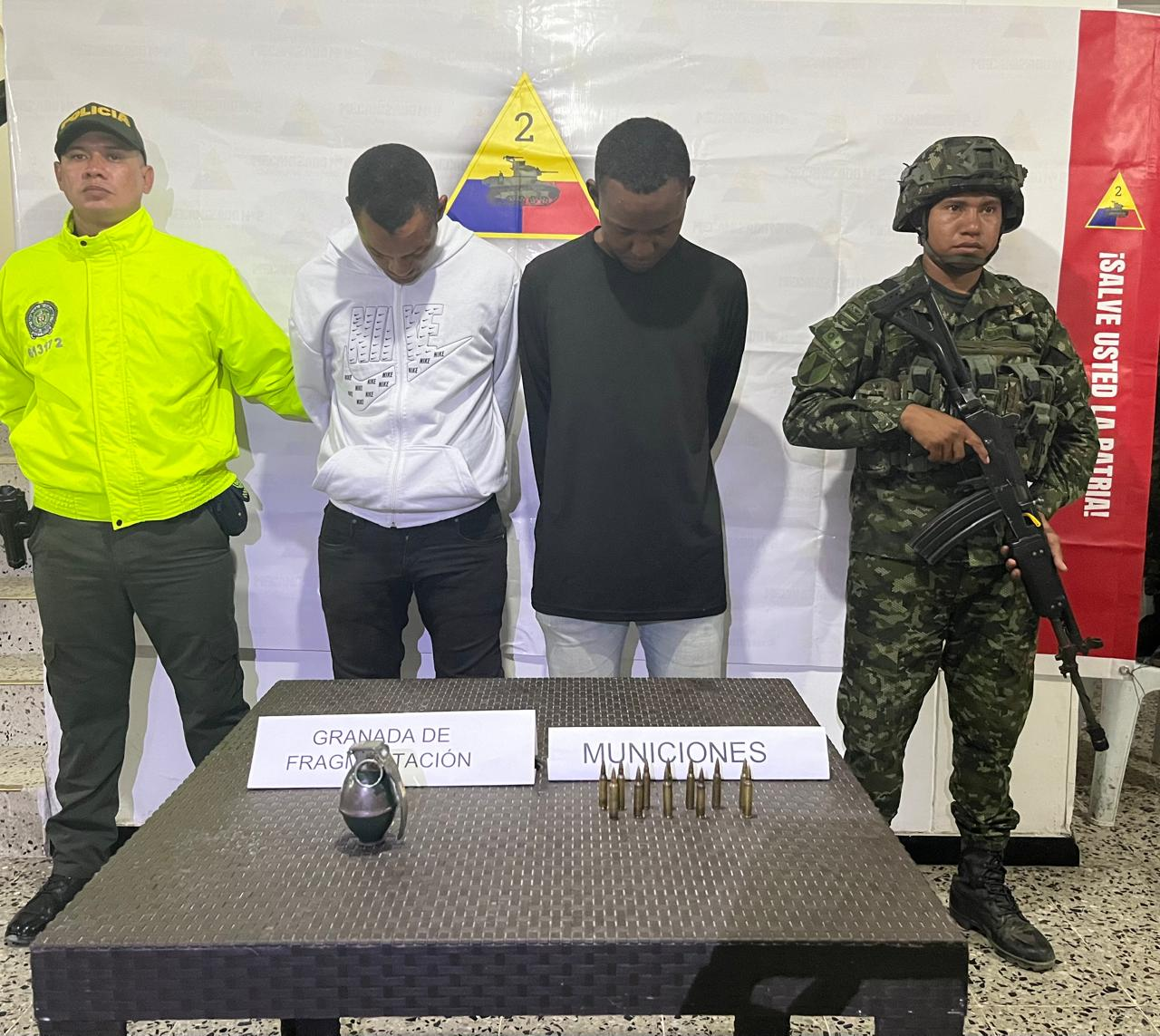 En un operativo conjunto entre el Grupo de Caballería Blindado Mediano N°2 “General Juan José Rondo” y la Policía Nacional, fueron capturados dos presuntos integrantes del Grupo Armado Organizado Clan del Golfo en la vereda La Sierrita, zona rural de San Juan del Cesar, al sur de La Guajira.