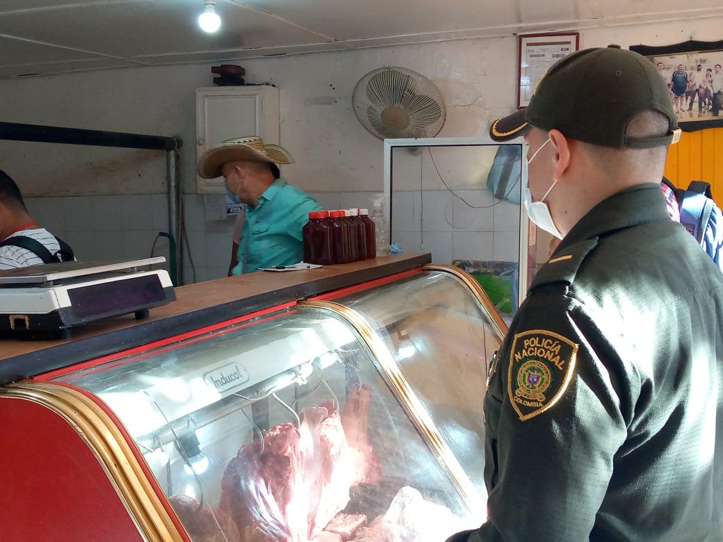 Personal de la Policía Nacional de forma conjunta con las secretarías de Salud y Gobierno, Inspección de Policía, Personería y el Referente Ambiental Departamental, procedieron a realizar visitas a los establecimientos cárnicos y tiendas para la respectiva verificación de estos productos.