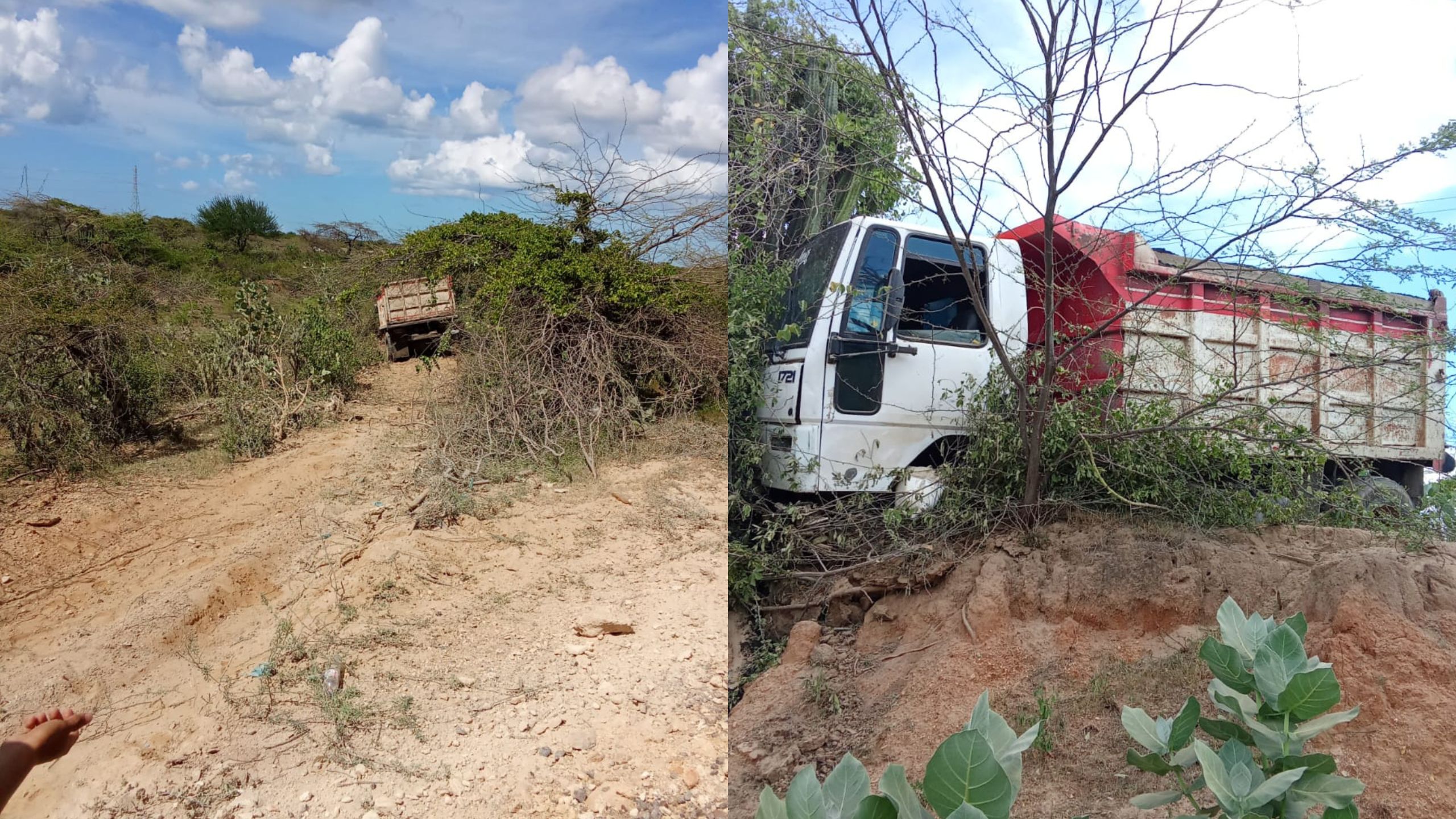 A la altura del kilómetro 102 de la vía que conecta el municipio de Uribia con el corregimiento de Puerto Bolívar, la movilidad se vio afectada este viernes tras el accidente de una volqueta contratada por Invías, que terminó fuera de la carretera y quedó en una zona enmontada.