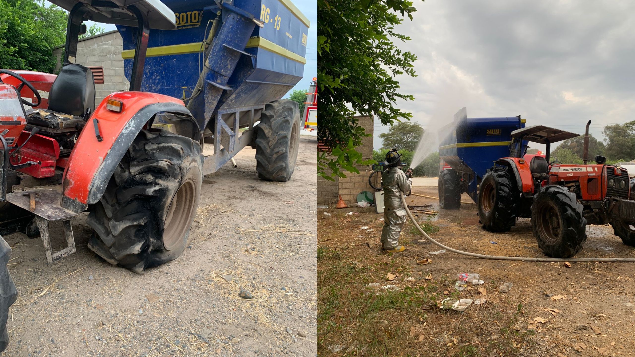 La atención consistió en el enfriamiento de la tolva y de las ruedas del tractor, para lo cual se emplearon dos tramos de manguera utilizando cerca de 50 galones de agua. La emergencia fue controlada en un tiempo aproximado de 32 minutos.