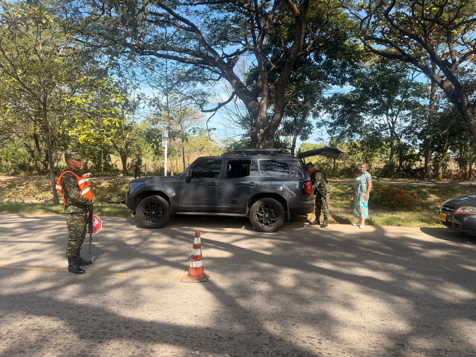 Como parte del dispositivo, fueron habilitados cerca de 24 puestos de control militar en rutas estratégicas, entre ellas la Ruta Nacional 80, que conecta municipios como Valledupar, San Juan del Cesar, Villanueva, Fonseca, Distracción y Barrancas, así como la Ruta Nacional 90, que comunica con Santa Marta. El despliegue también se extiende a vías terciarias y veredas, reforzando la presencia institucional en toda la región.