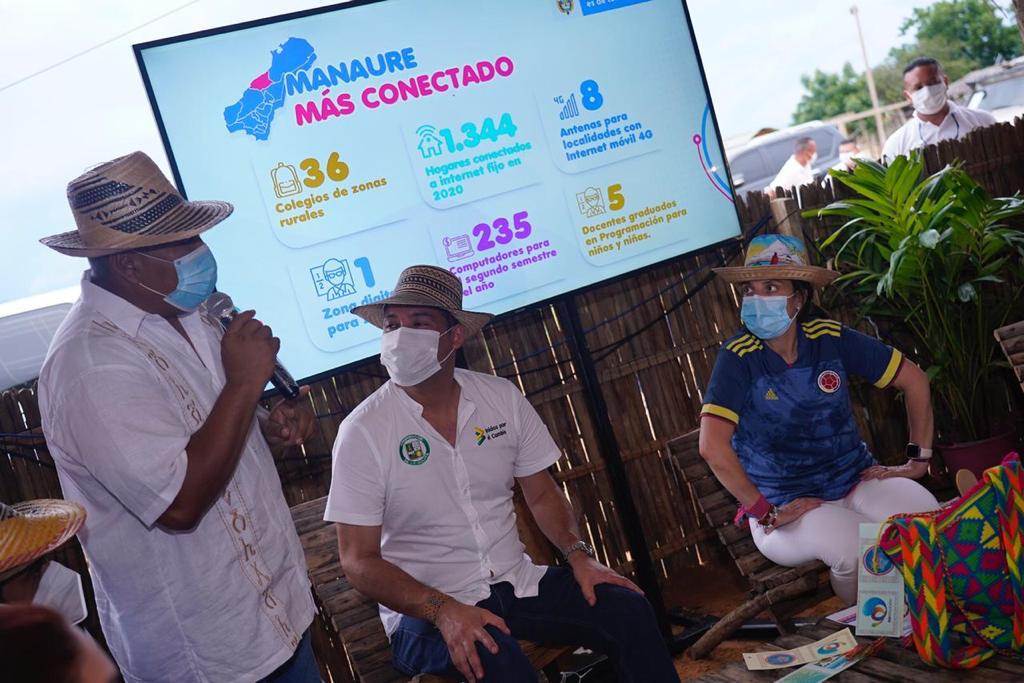 Abudinen informó que actualmente hay 29 zonas digitales de conexión gratuita a internet vía WiFi, 25 en áreas rurales y 4 en urbanas, y ratificó que en los próximos meses serán instaladas y activadas 14 zonas adicionales en áreas urbanas de 7 municipios.
