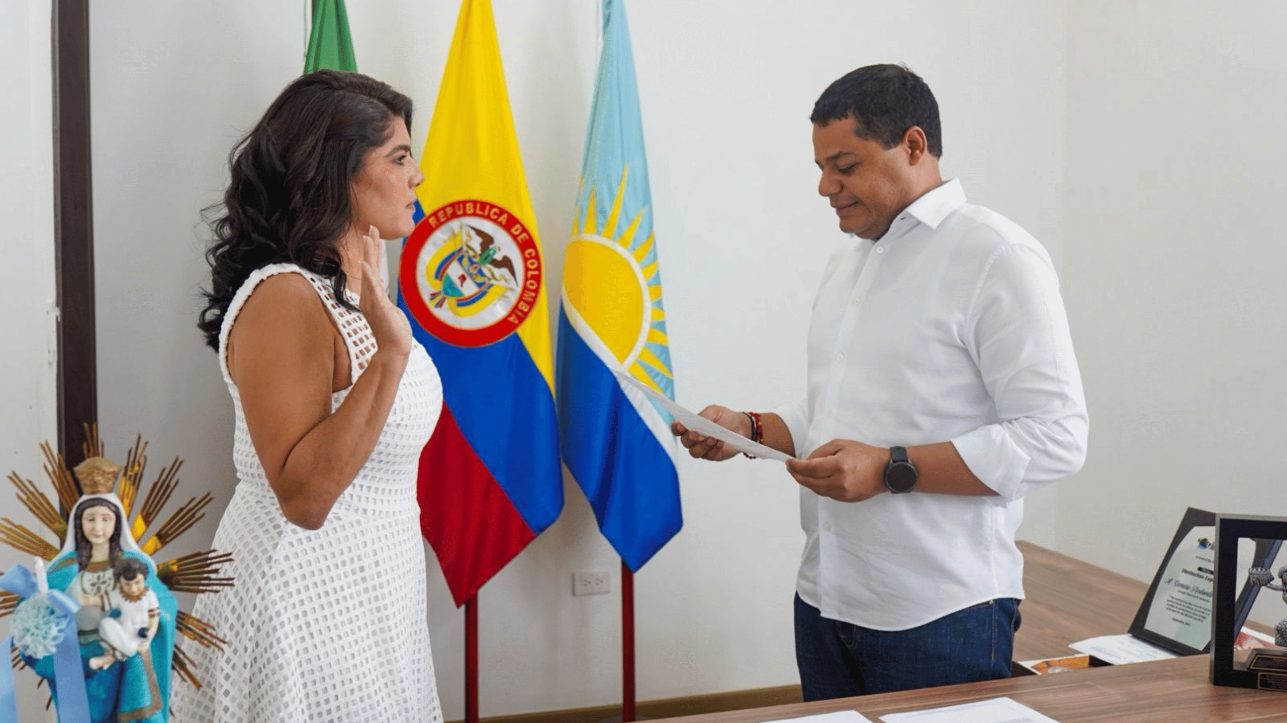 El alcalde de Riohacha, Genaro Redondo Choles, posesionó este 21 de octubre a Lisette Paola Meza Vence como nueva directora de Talento Humano y Administración de Recursos Físicos del Distrito, en reemplazo de Zunellys Gómez Gutiérrez, quien desempeñó el cargo con compromiso y profesionalismo desde el inicio de la actual administración.